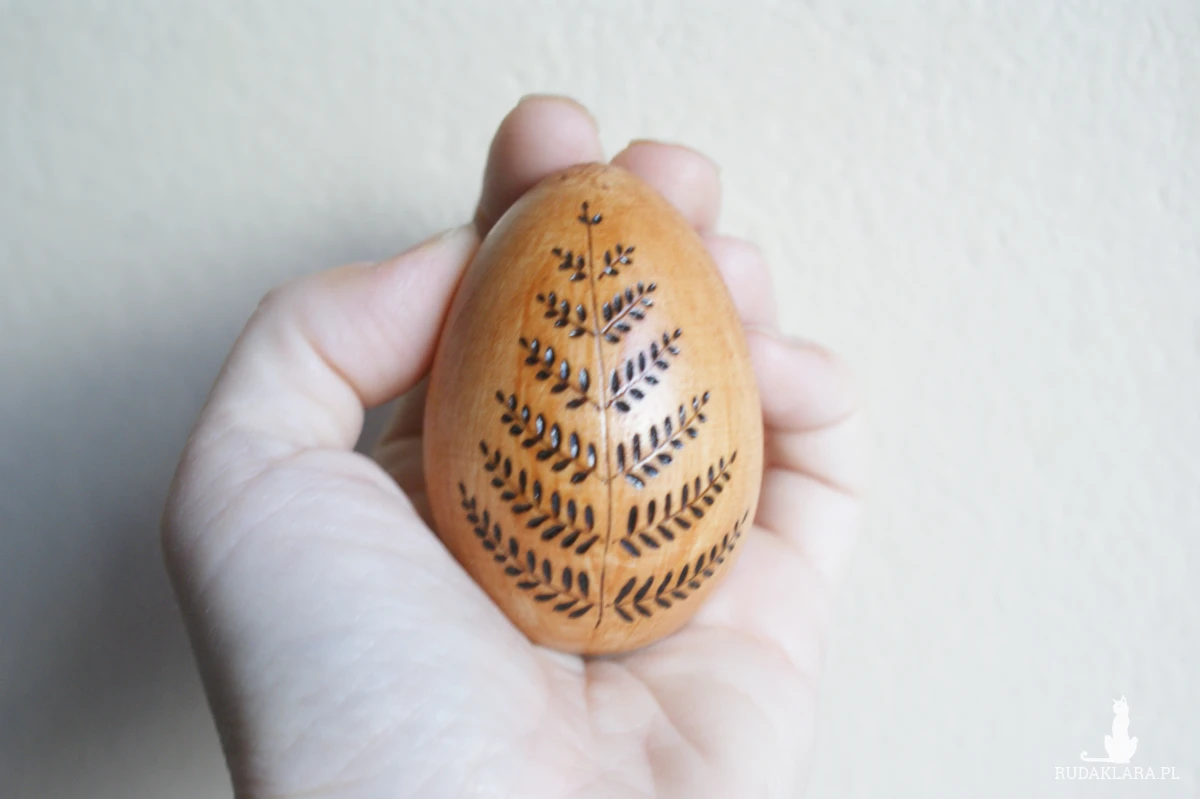 Drewniana pisanka/dekoracja całoroczna. * ręcznie wypalana w technice pirografii * zaimpregnowana nietoksycznym lakierem * bardzo trwała * gotowa do wysyłki Wymiary: wysokość - ok. 6 cm - wielkość jajka kurzego.
