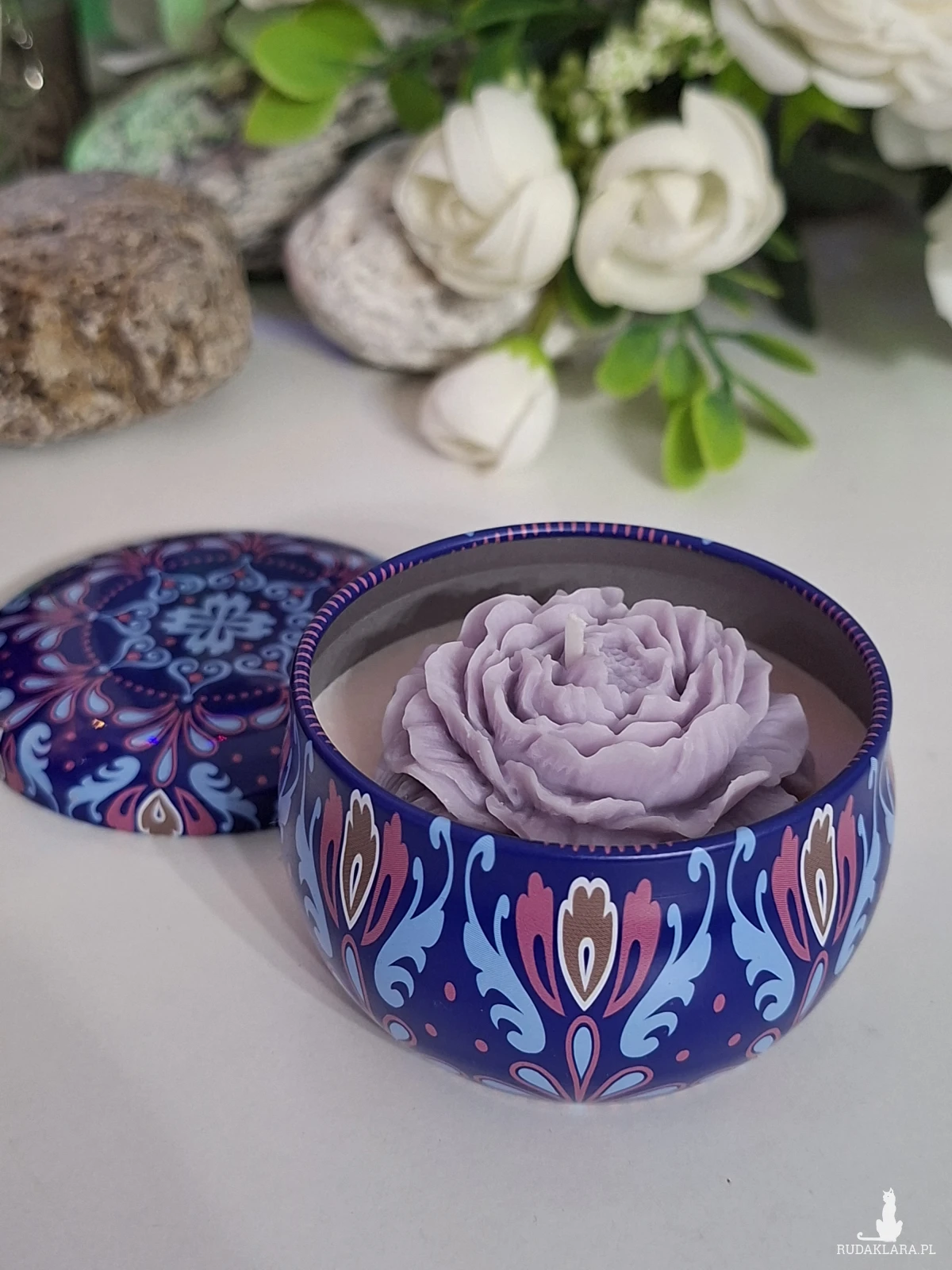 Świeca sojowa w pojemniku w stylu orientalnym.