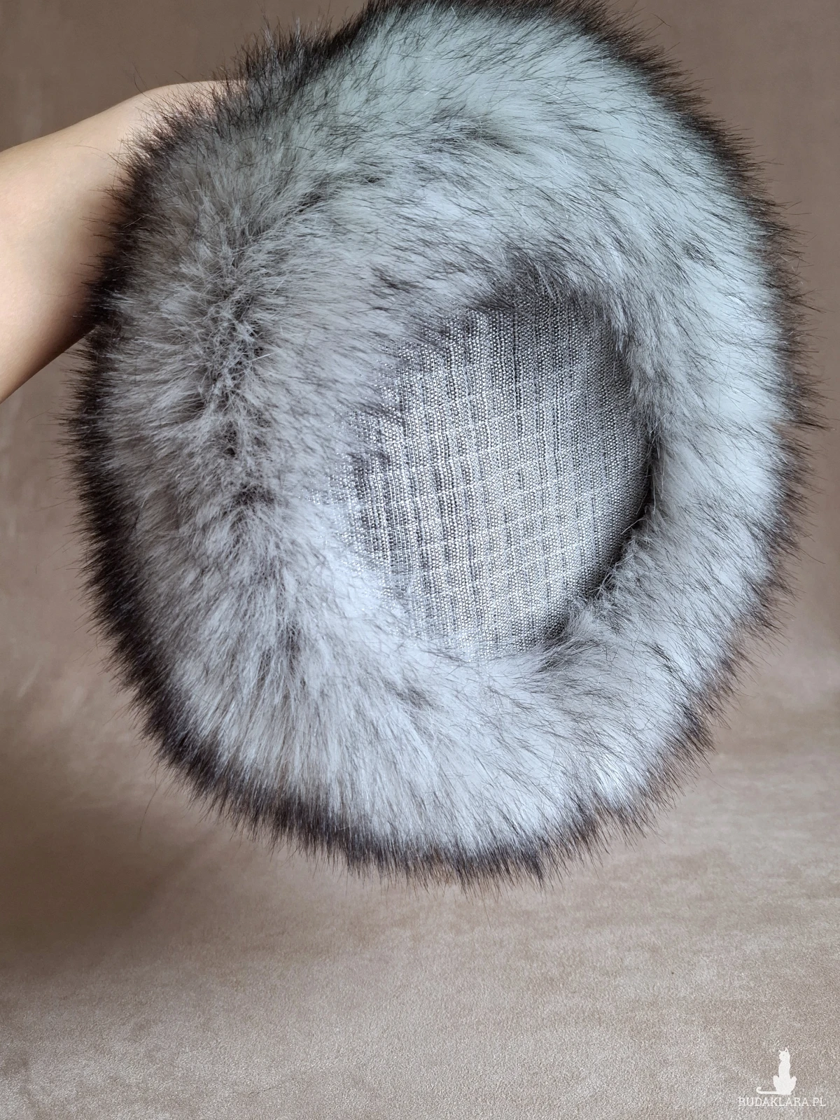 Stylowy futrzany toczek wykonany z gęstego, miękkiego i puszystego futerka.