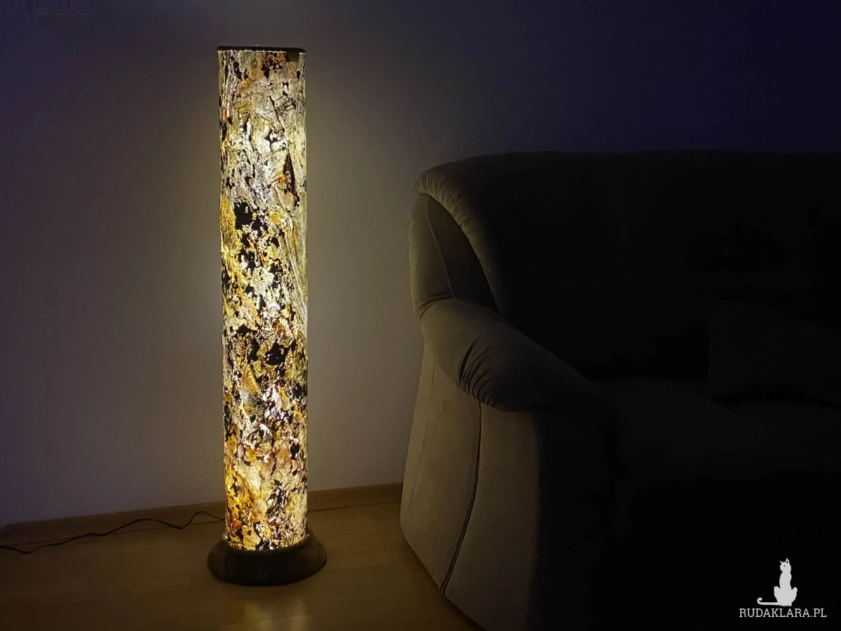 Sprzedam kamienną lampę.Wykonana z forniru kamiennego-różne odmiany kamienia naturalnego na warstwie żywicy.Wysokość 120 cm,oświetlenie led z pilotem(ściemnianie,rozjaśnianie itp).Ciężka i konkretna.Zainteresowanym osobom chętnie doślę więcej zdjęć i krótki filmik lampki..Pozdrawiam.