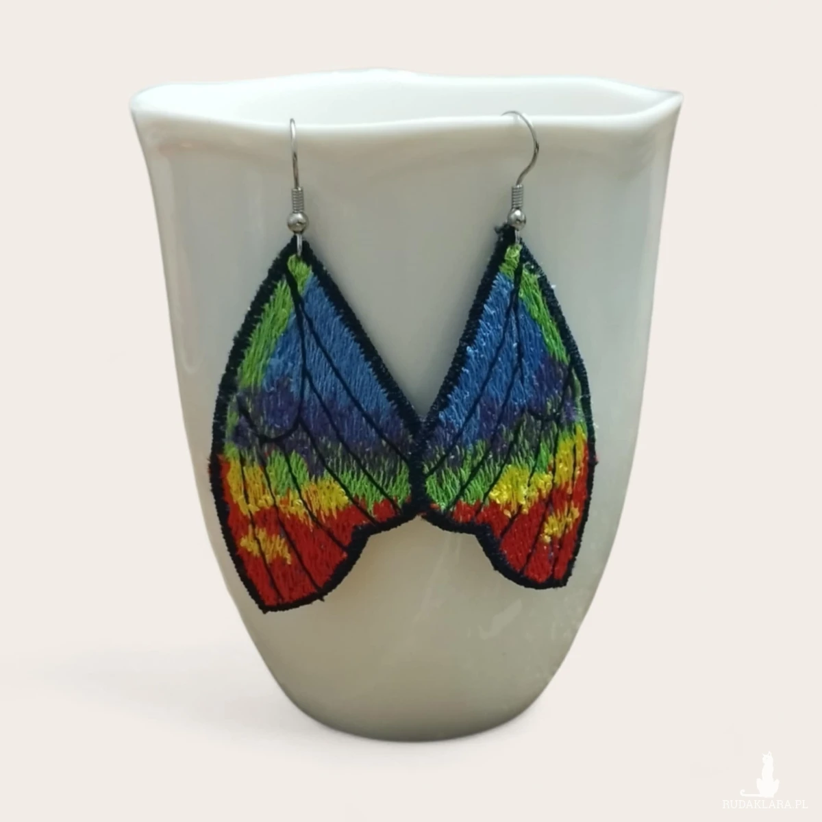 Haftowane kolczyki skrzydła motyla są ciekawe i bardzo oryginalne. Kolczyki ciekawych barwach zachwycają kształtem, kolorem i z pewnością spodobają się kobietom ceniącym indywidualność oraz modne i nietuzinkowe stylizacje.