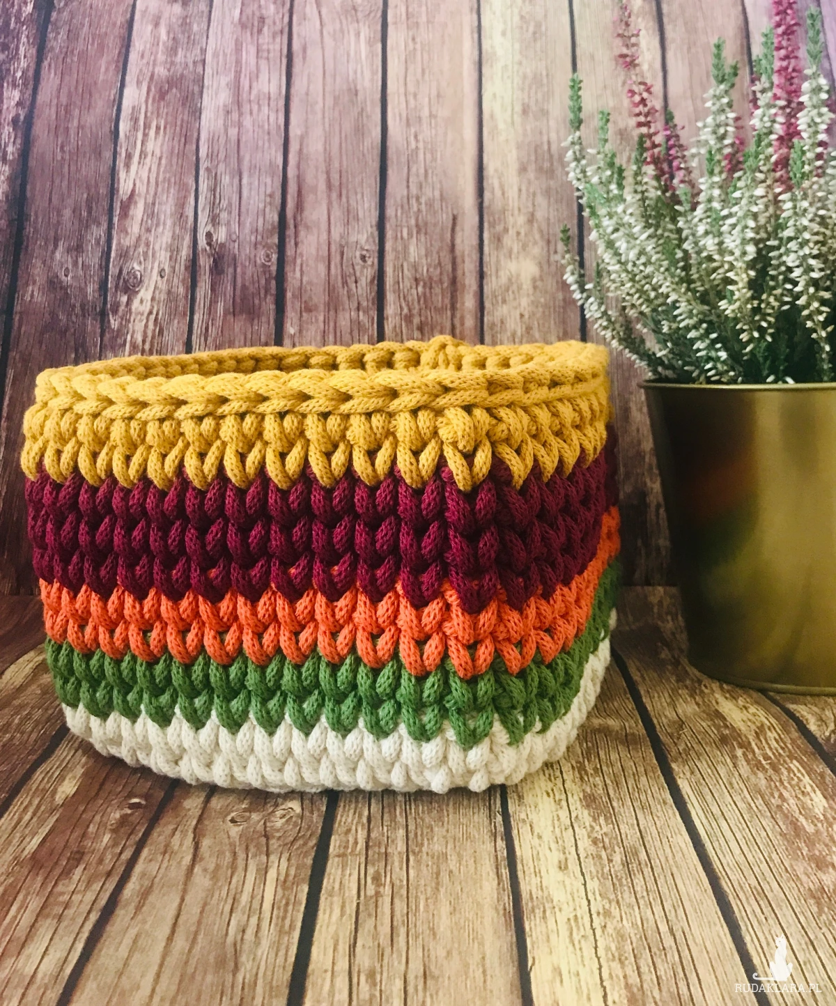 Kwadratowy koszyk ze sznurka bawełnianego o średnicy 5mm w kolorowe pasy
