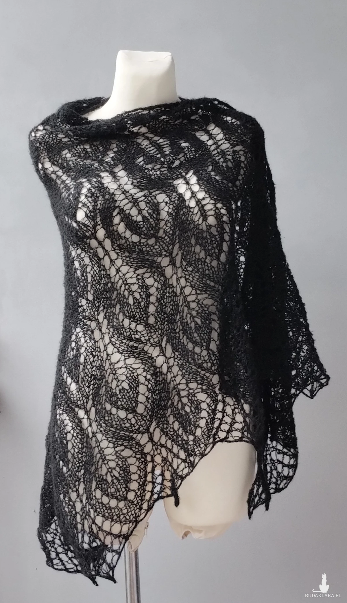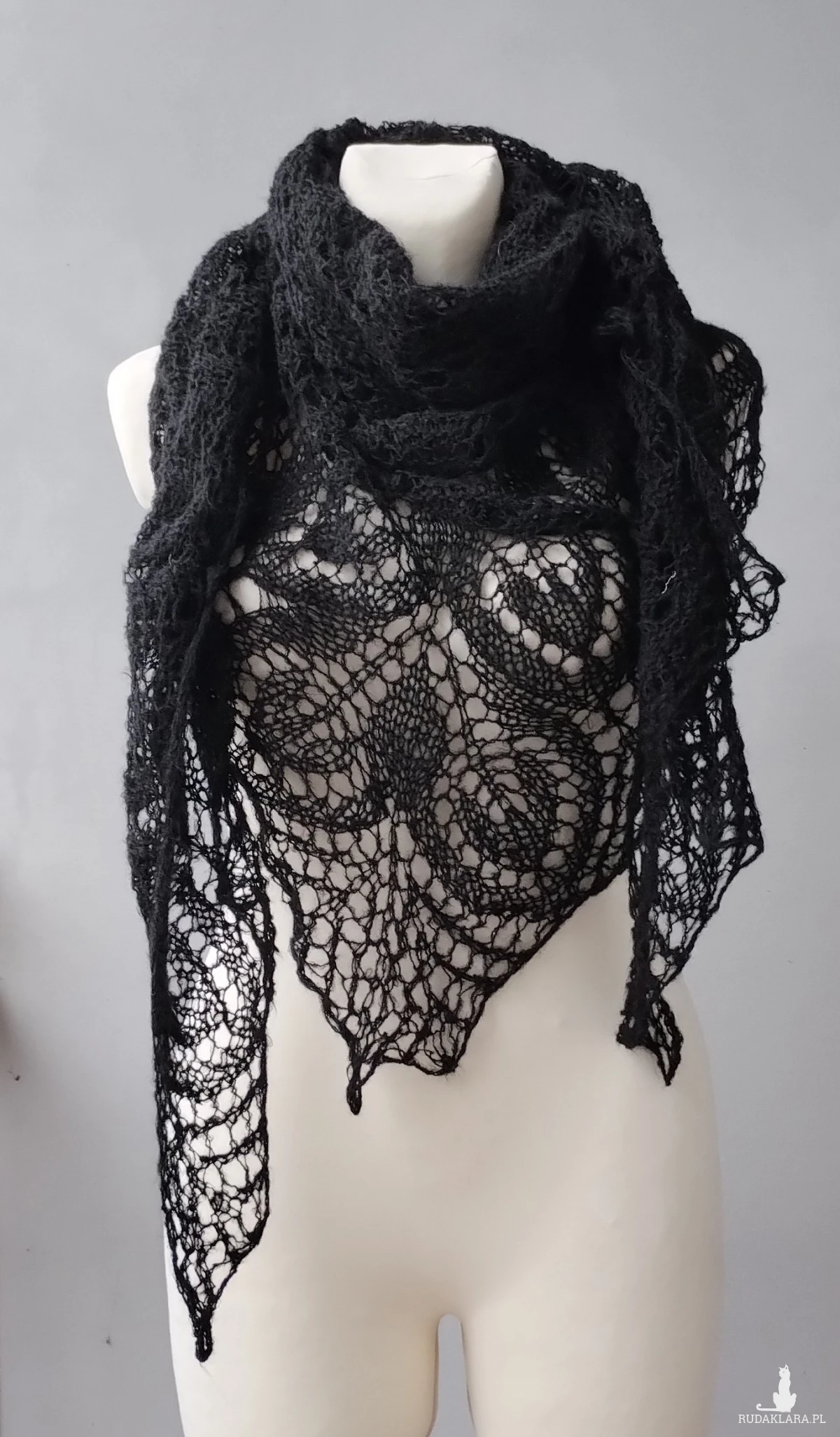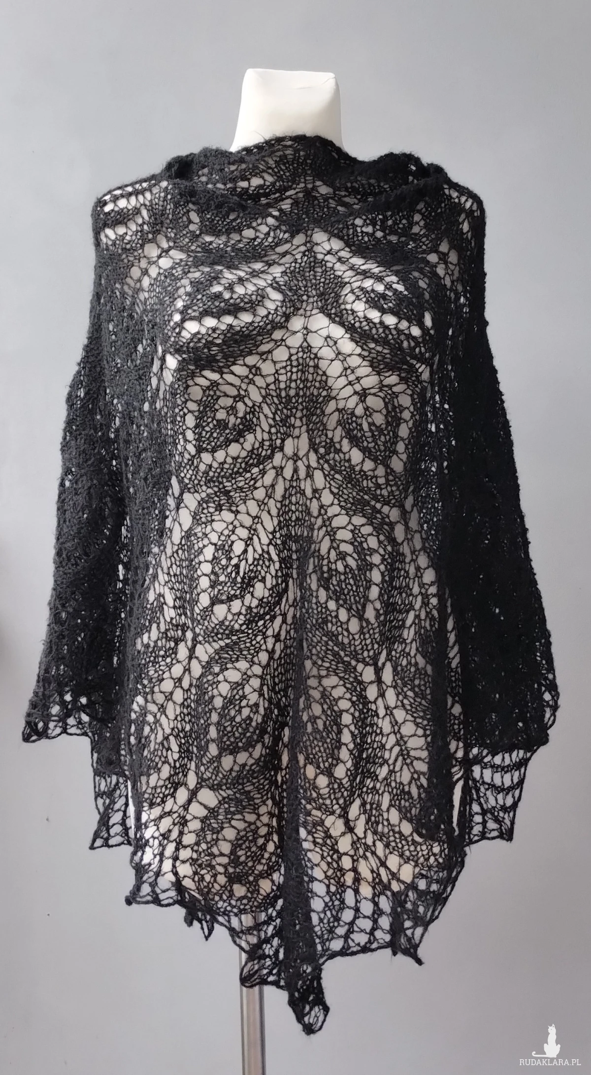 z mieszanki moheru i akrylu w kolorze czarnym Wymiary: szerokość 220cm, długość 100 cm. Prać ręcznie w temperaturze 30 stopni, suszyć na leżąco .