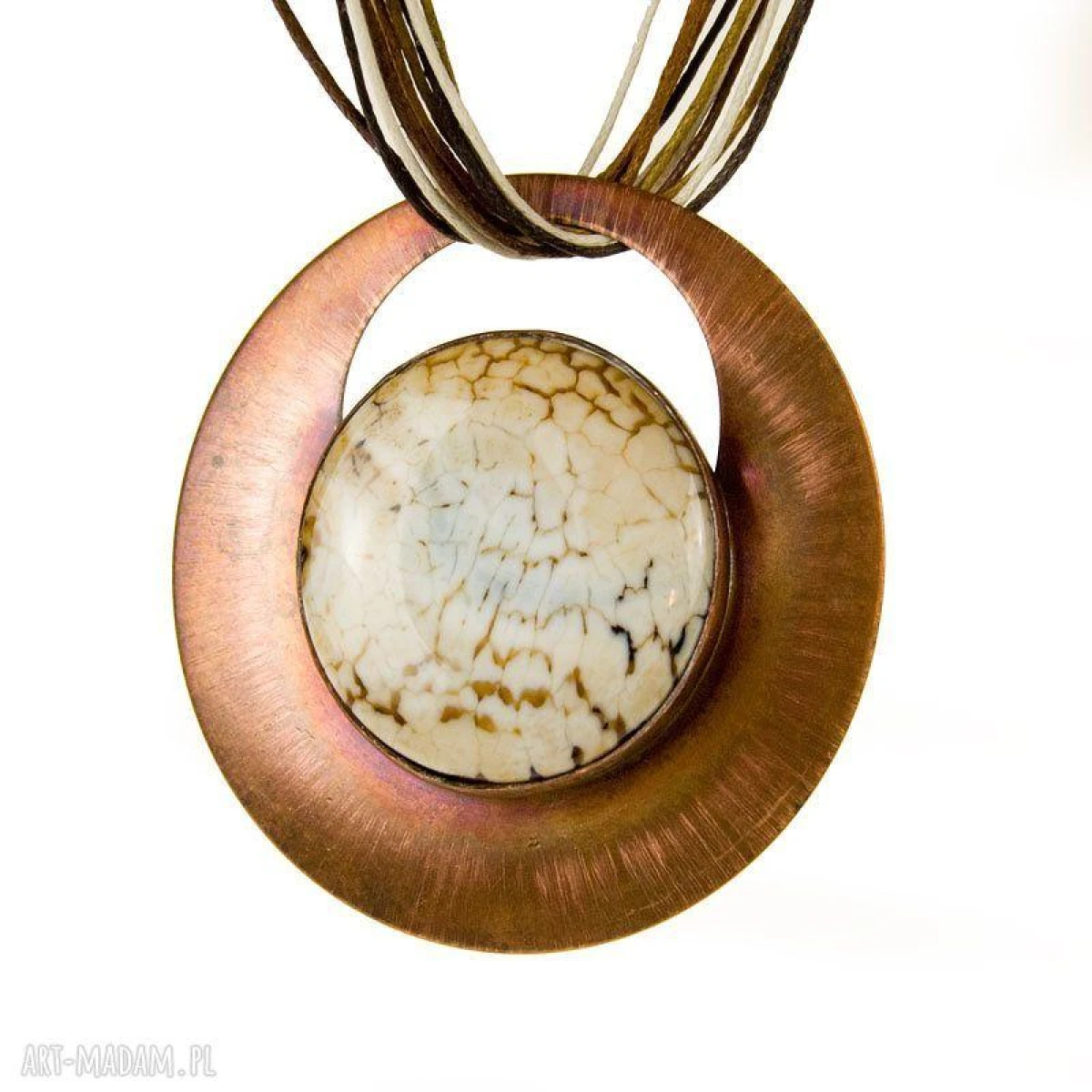 Miedziany wisior z agatem w odcieniu cappuccino c388