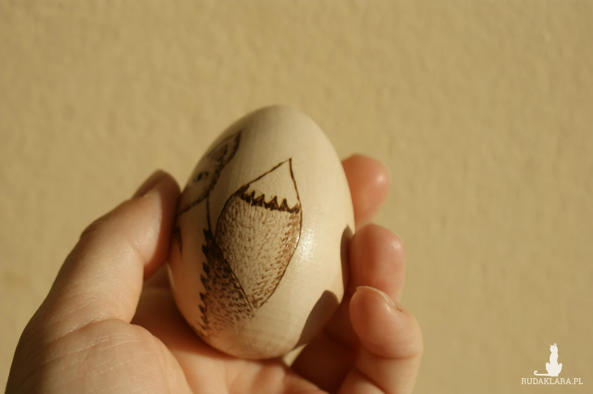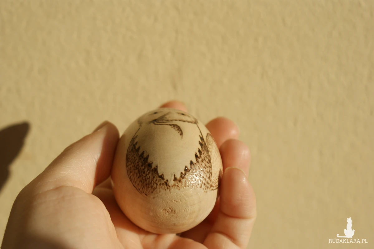 Drewniana pisanka/dekoracja całoroczna. * ręcznie wypalana w technice pirografii * zaimpregnowana nietoksycznym lakierem * bardzo trwała * gotowa do wysyłki Wymiary: wysokość - ok. 6 cm - wielkość jajka kurzego.