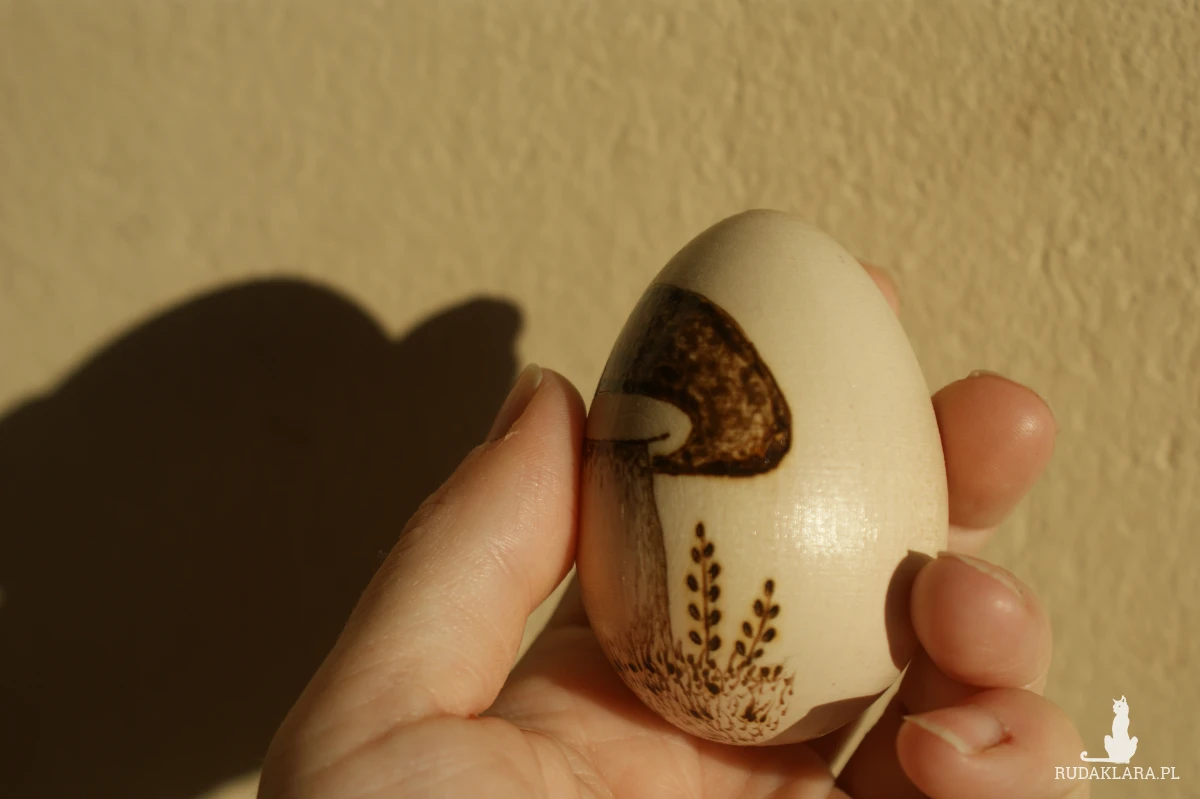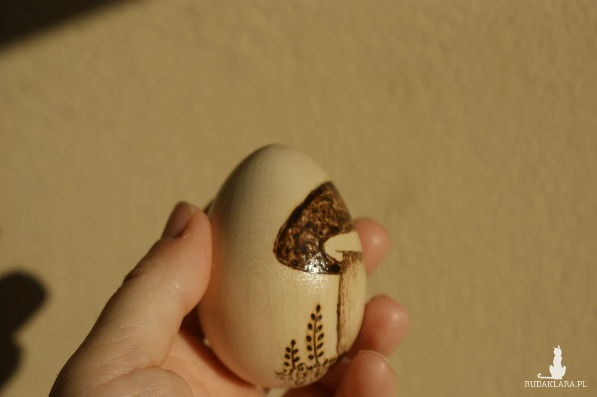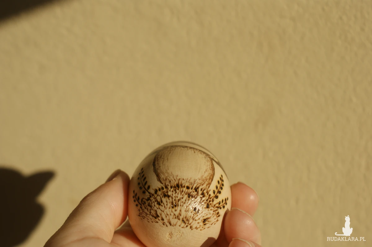 Drewniana pisanka/dekoracja całoroczna. * ręcznie wypalana w technice pirografii * zaimpregnowana nietoksycznym lakierem * bardzo trwała * gotowa do wysyłki Wymiary: wysokość - ok. 6 cm - wielkość jajka kurzego.