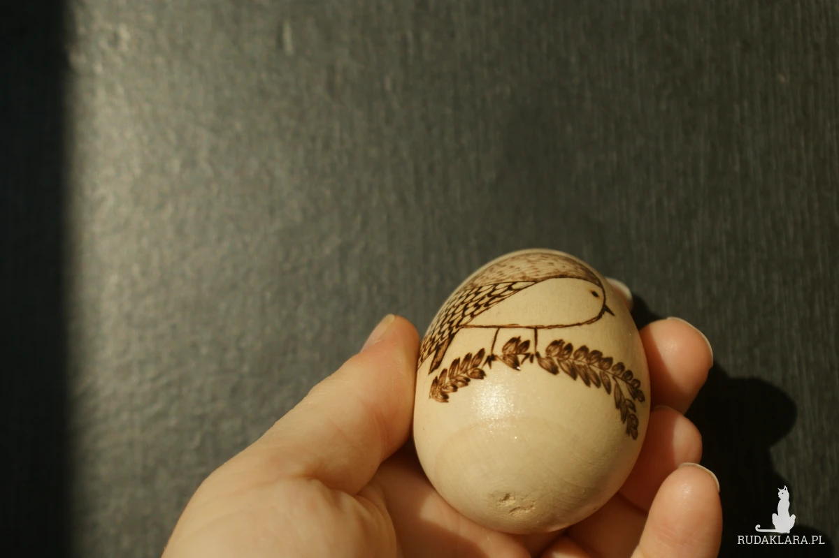 Drewniana pisanka/dekoracja całoroczna. * ręcznie wypalana w technice pirografii * zaimpregnowana nietoksycznym lakierem * bardzo trwała * gotowa do wysyłki Wymiary: wysokość - ok. 6 cm - wielkość jajka kurzego.