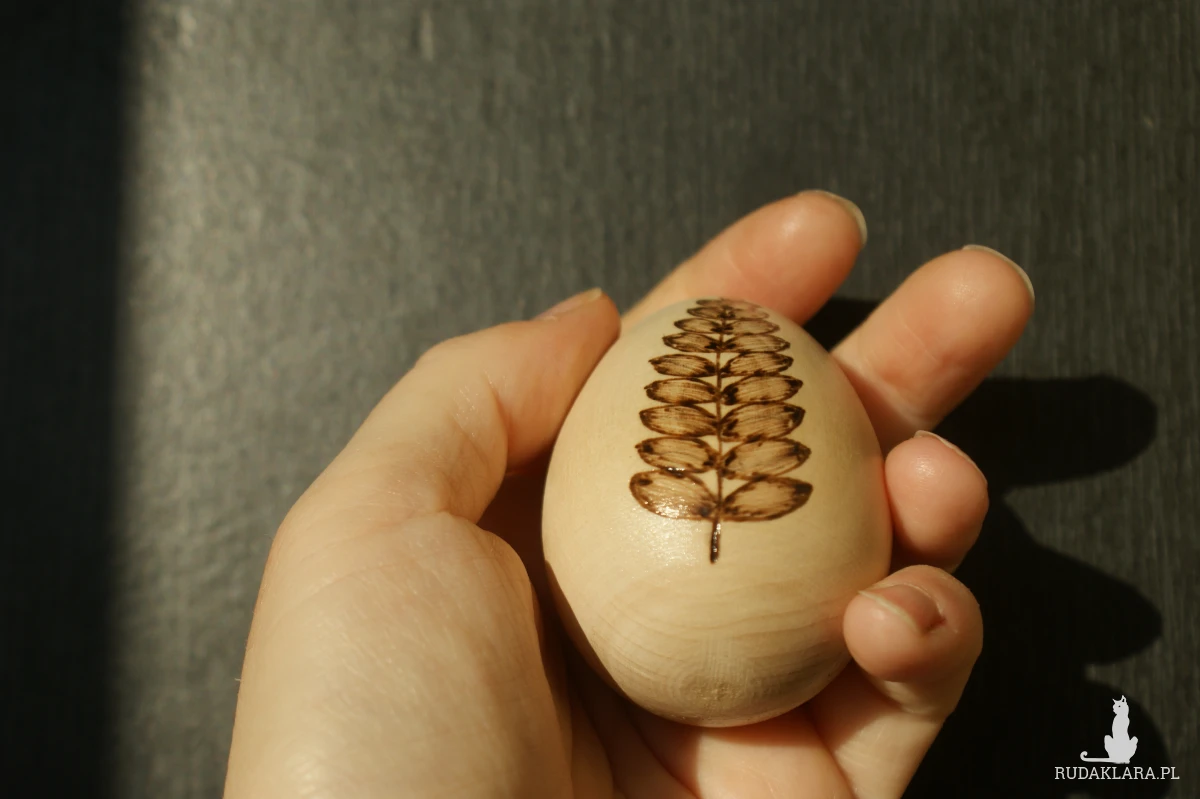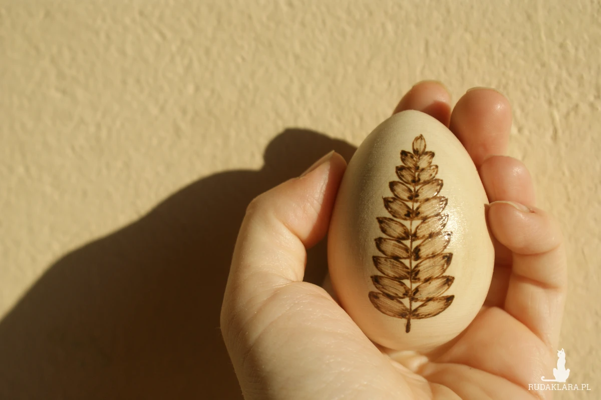 Drewniana pisanka/dekoracja całoroczna. * ręcznie wypalana w technice pirografii * zaimpregnowana nietoksycznym lakierem * bardzo trwała * gotowa do wysyłki Wymiary: wysokość - ok. 6 cm - wielkość jajka kurzego.