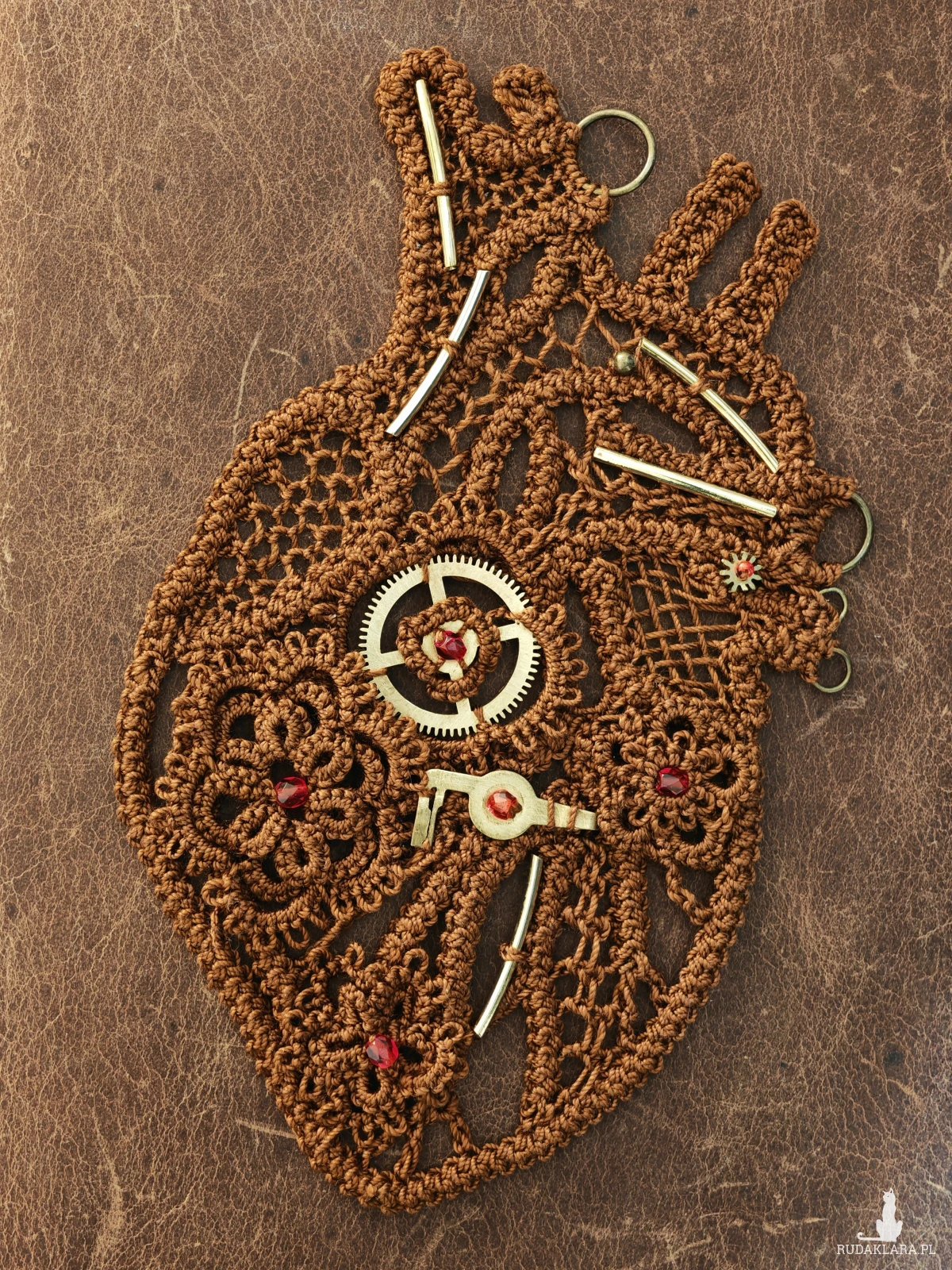 Koronkowe serce w urzekającym stylu steampunk! 🫀⚙️🧵Każdy detal, od delikatnych splotów po mosiężne zębatki i rubinowe akcenty, został stworzony z pasją do rzemiosła i niezwykłych form. To idealne połączenie wiktoriańskiej elegancji z mechaniczną precyzją.