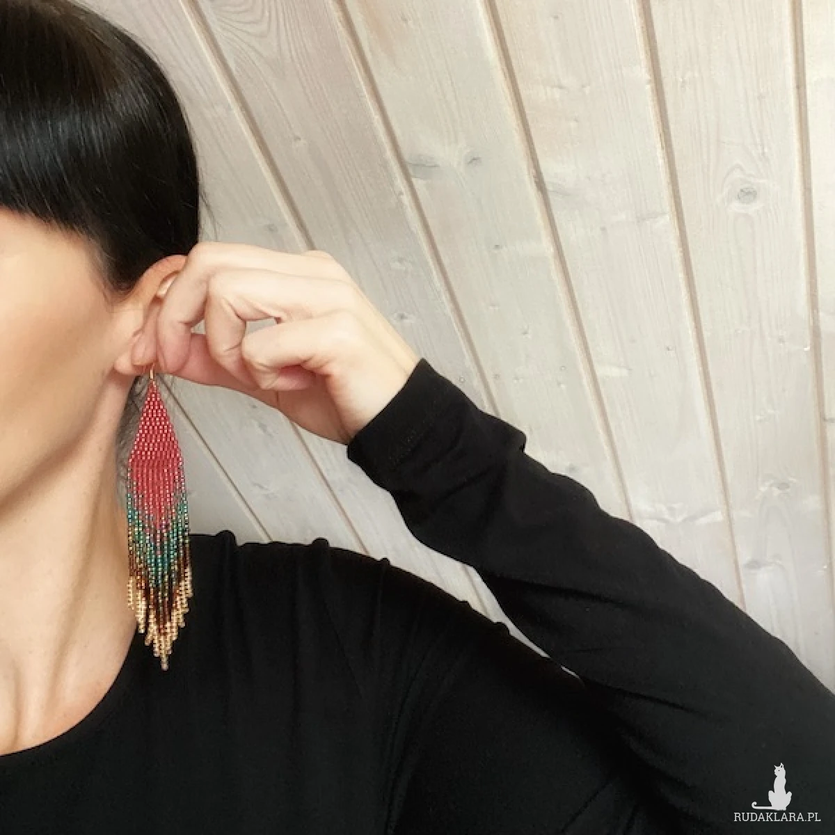 Etniczne kolczyki zostały w 100% utkane ręcznie z koralików TOHO 11. Każdą pracę wykonuję bardzo starannie.
