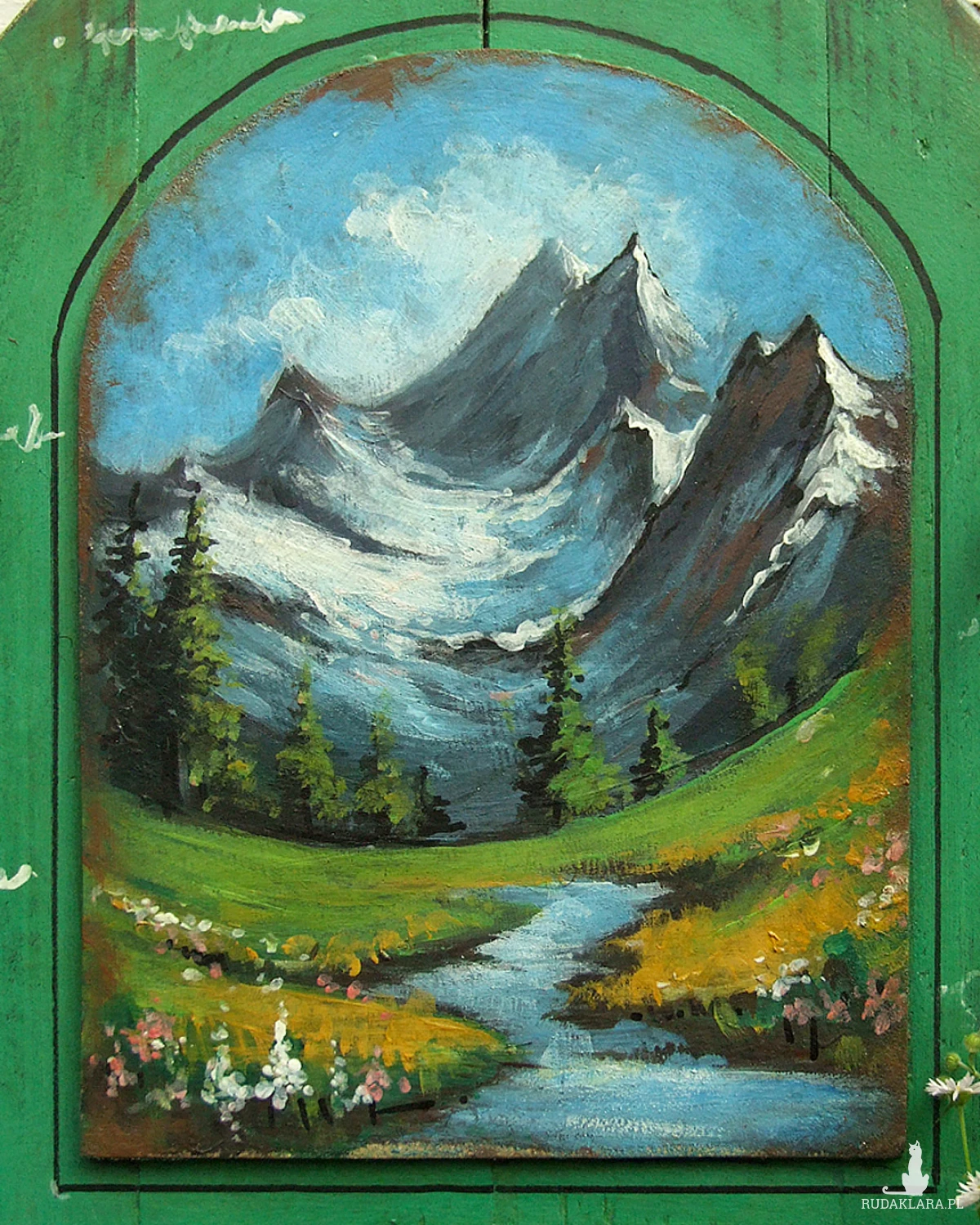 Dodatkową dekoracją jest malowany pejzaż, z widokiem na góry.