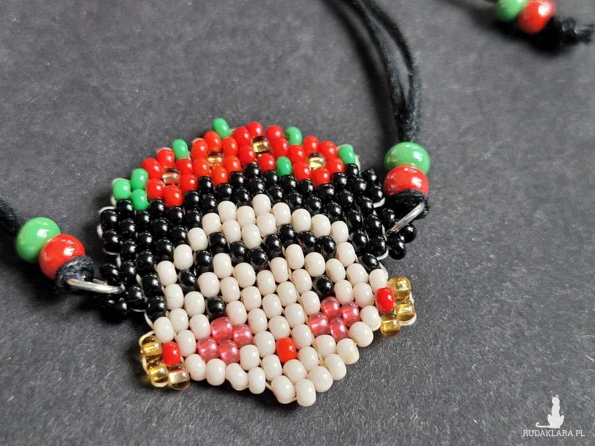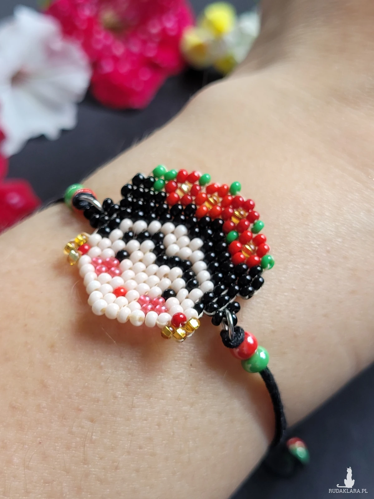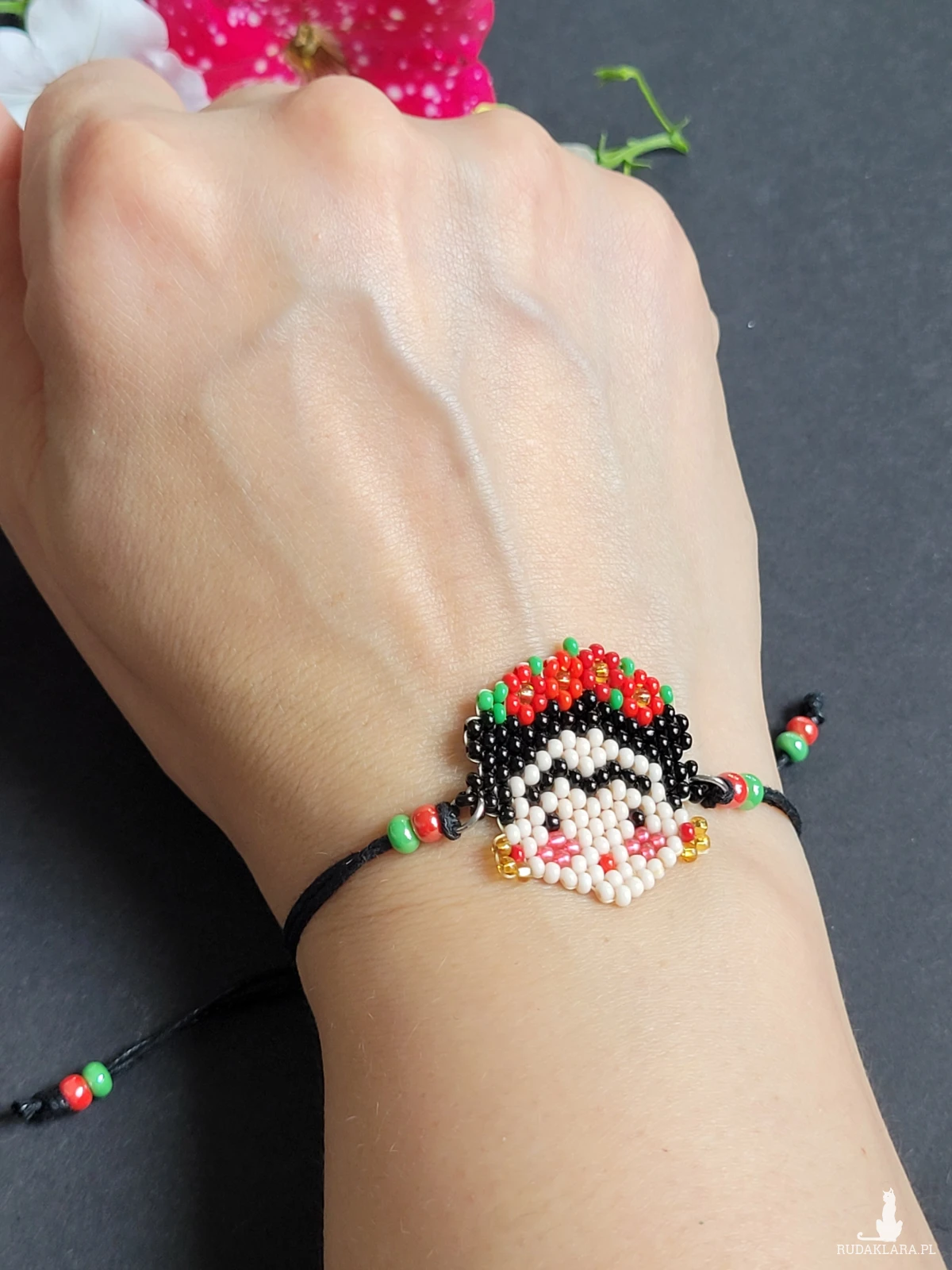 Bransoletka na sznurku Frida wianek czerwony kwiaty tkana z koralików