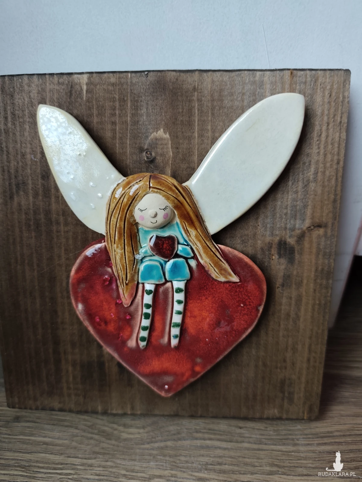 Aniołek ceramiczny wykonany z jasnej gliny, szkliwiony i dwukrotnie wypalany w piecu ceramicznym. polecam