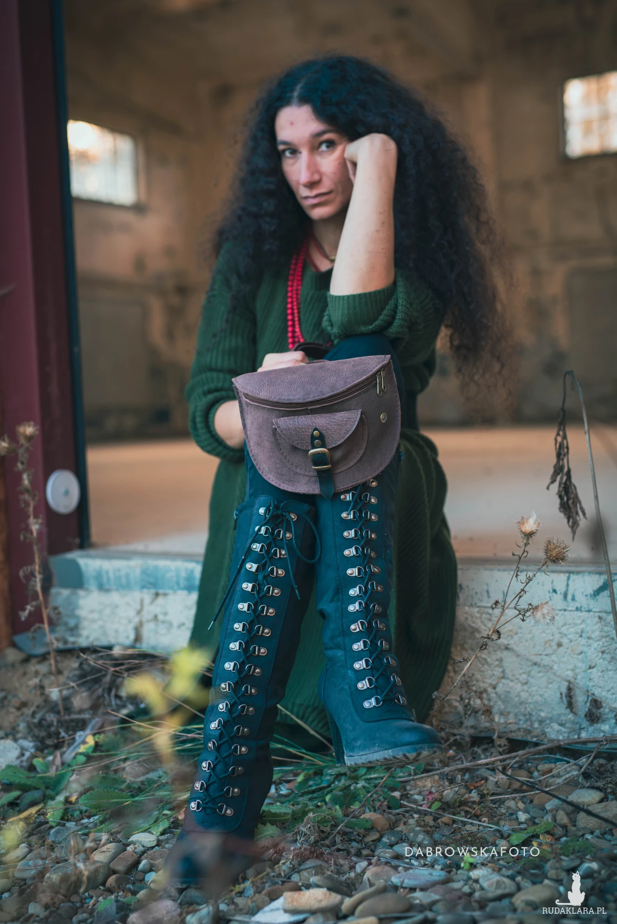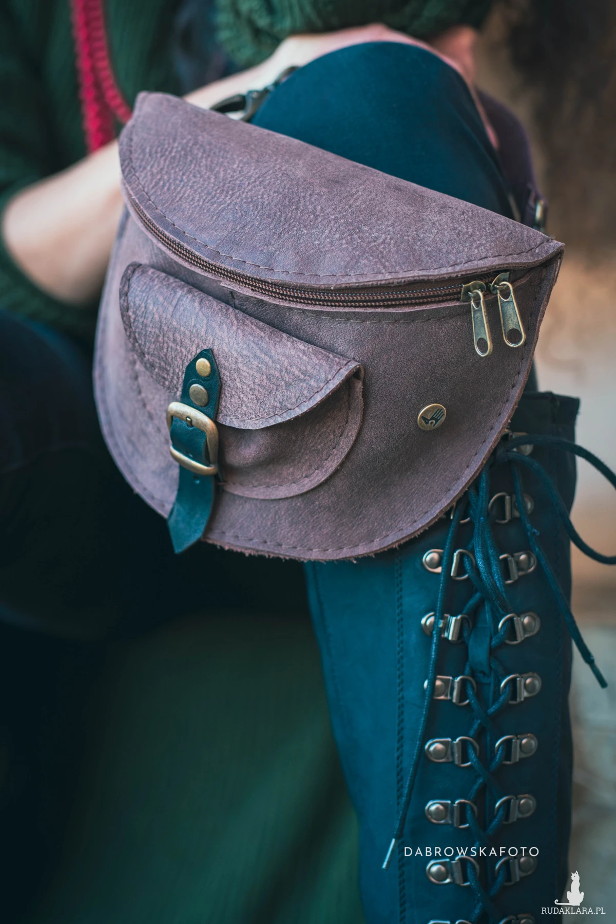 Praktyczna torebka na pas uszyta z brązowej skóry naturalnej (nubuk) w odcieniu kakao . Niewielka ale pojemna, pomieści telefon, portfel, chusteczki i najpotrzebniejsze kosmetyki. Z tyłu jedna, a z przodu dwie niewielkie kieszenie. Wewnątrz przegródka. Sprzedawana w komplecie z regulowanym paskiem zapinanym na karabińczyki. Można ją nosić również na ramieniu. Wymiary: 21/17cm.