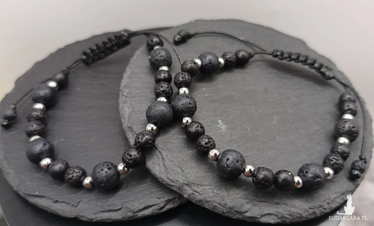 🖤🖤 Bransoletki dla par lawa wulkaniczna i stal szlachetna 🖤🖤
