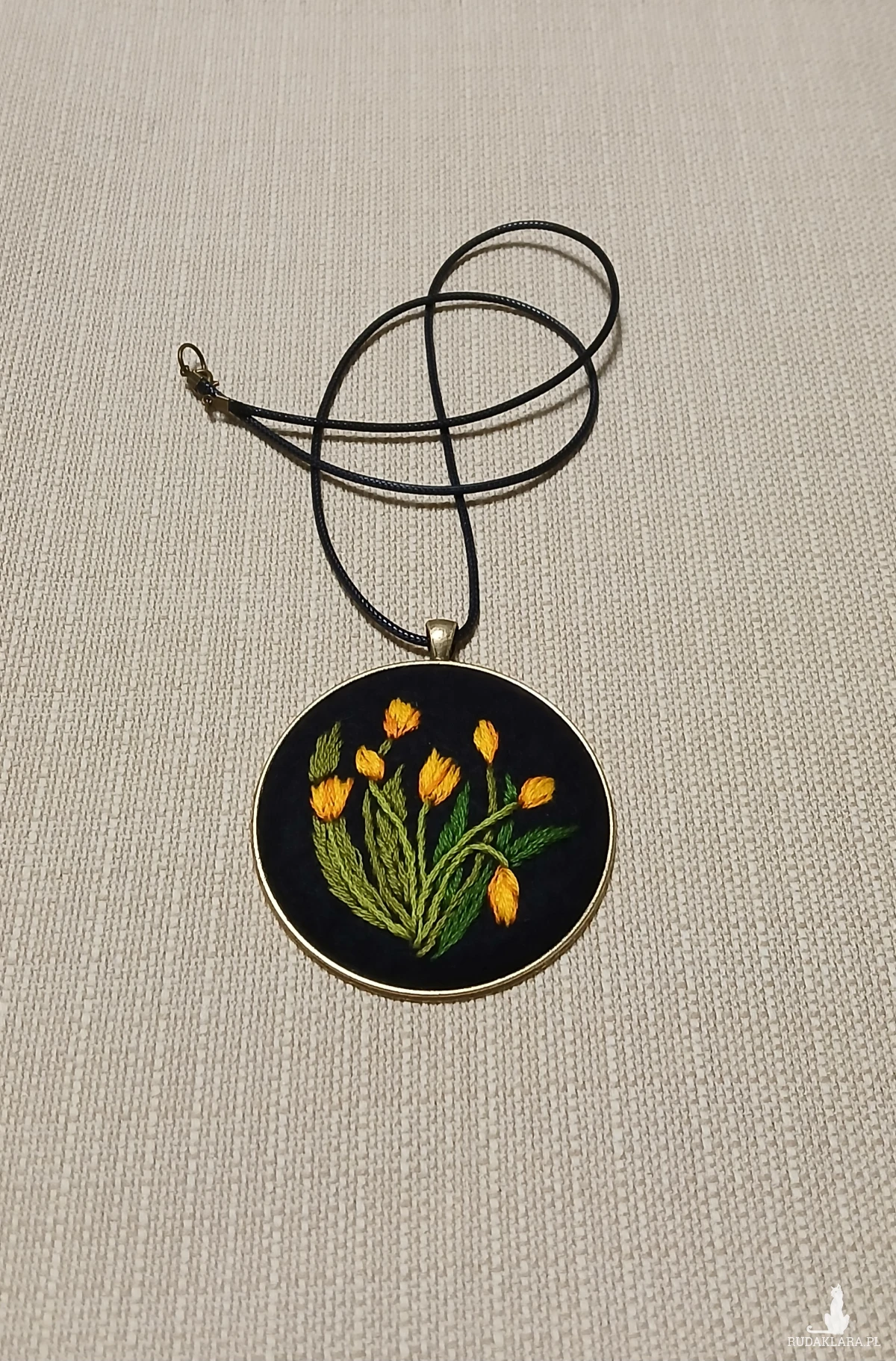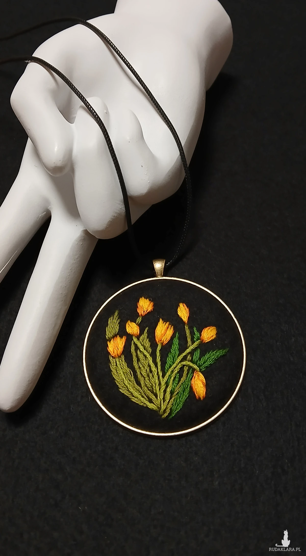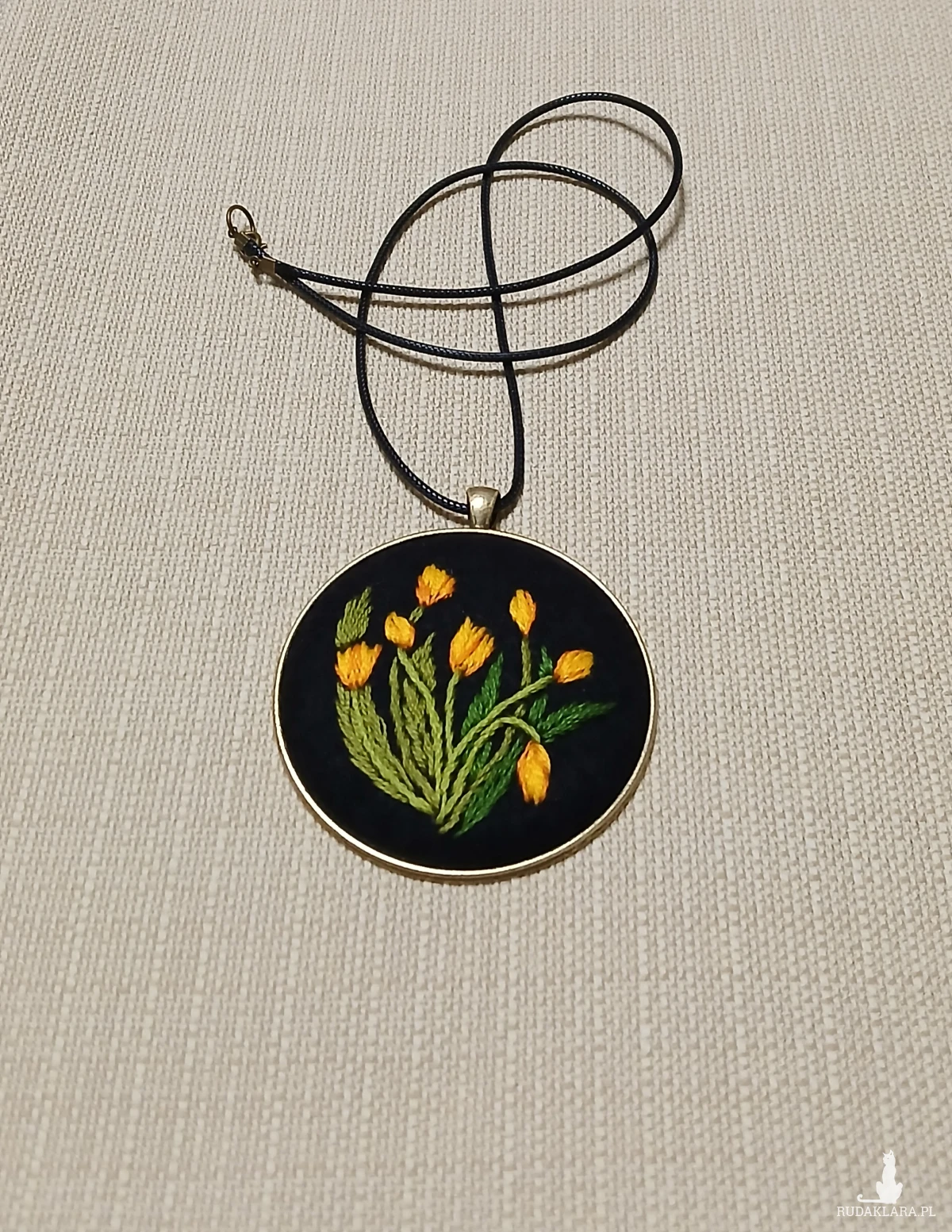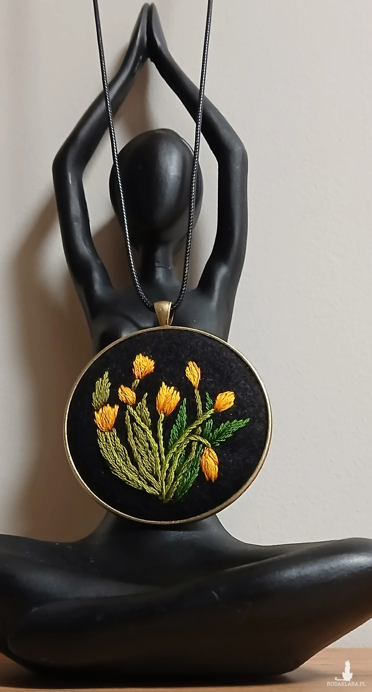 Wisior z duszą. Żółte tulipany i 6 cm średnicy. Ciekawa biżuteria która ma swój charakter dla pań, które lubią się wyróżniać.