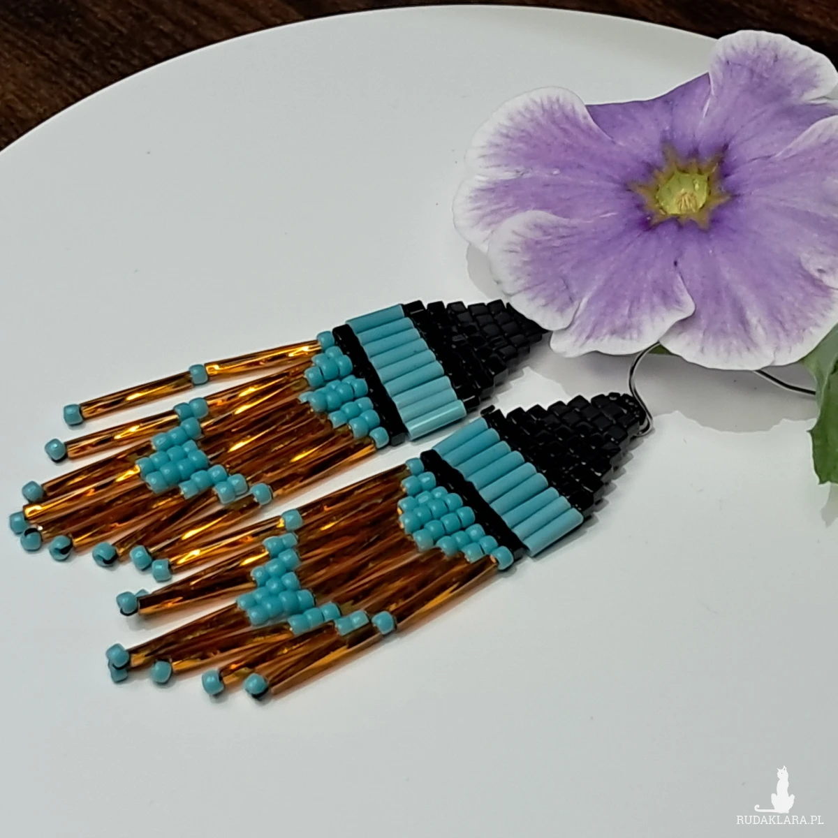Nie są zbyt długie ale bardzo efektowne. lLkkie frędzle pięknie pracują w ruchu, dodając stylizacji energii i charakteru. Kolczyki świetnie sprawdzą się zarówno jako mocny akcent do prostych ubrań, jak i jako dopełnienie stylu boho, etno czy vintage.