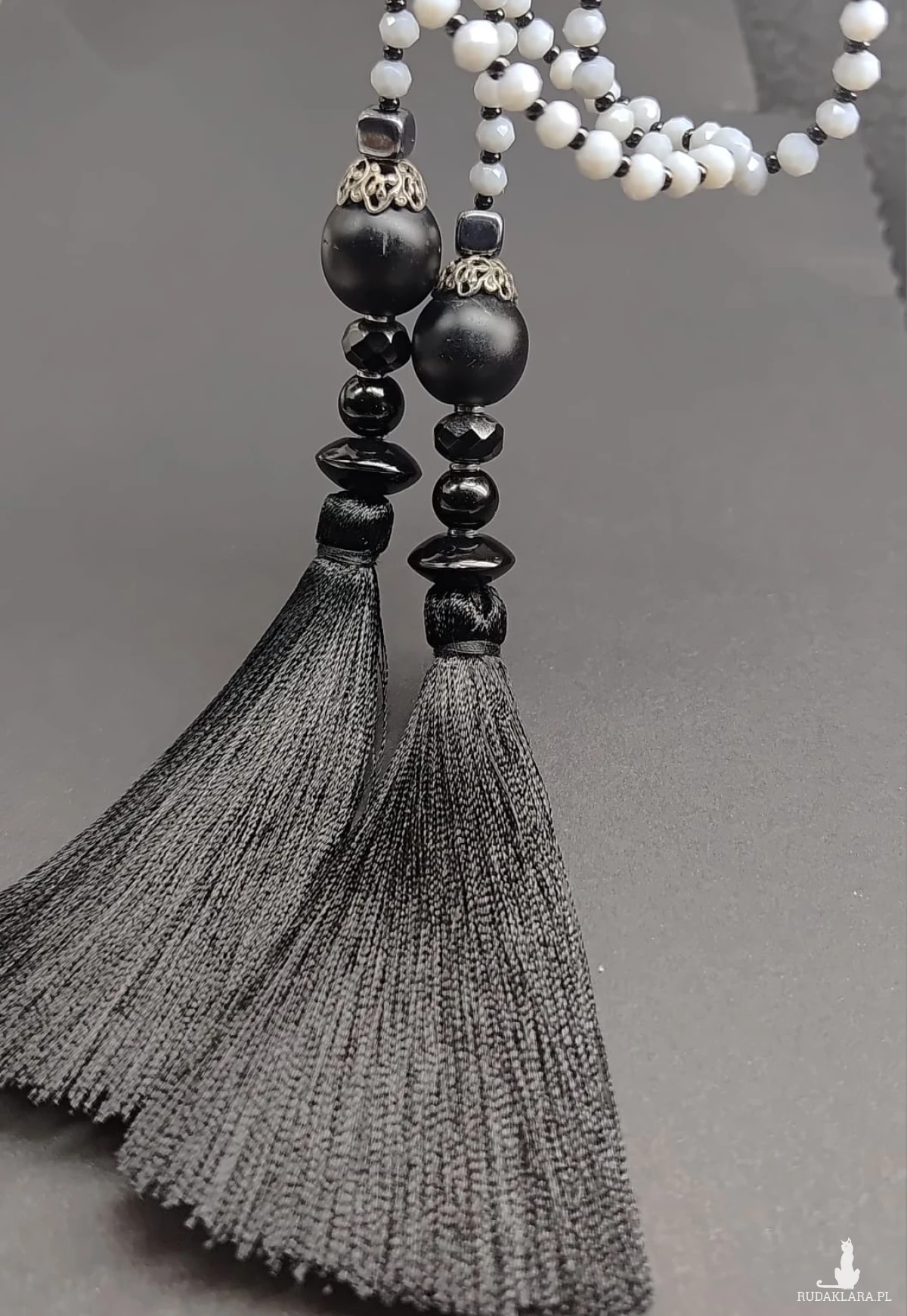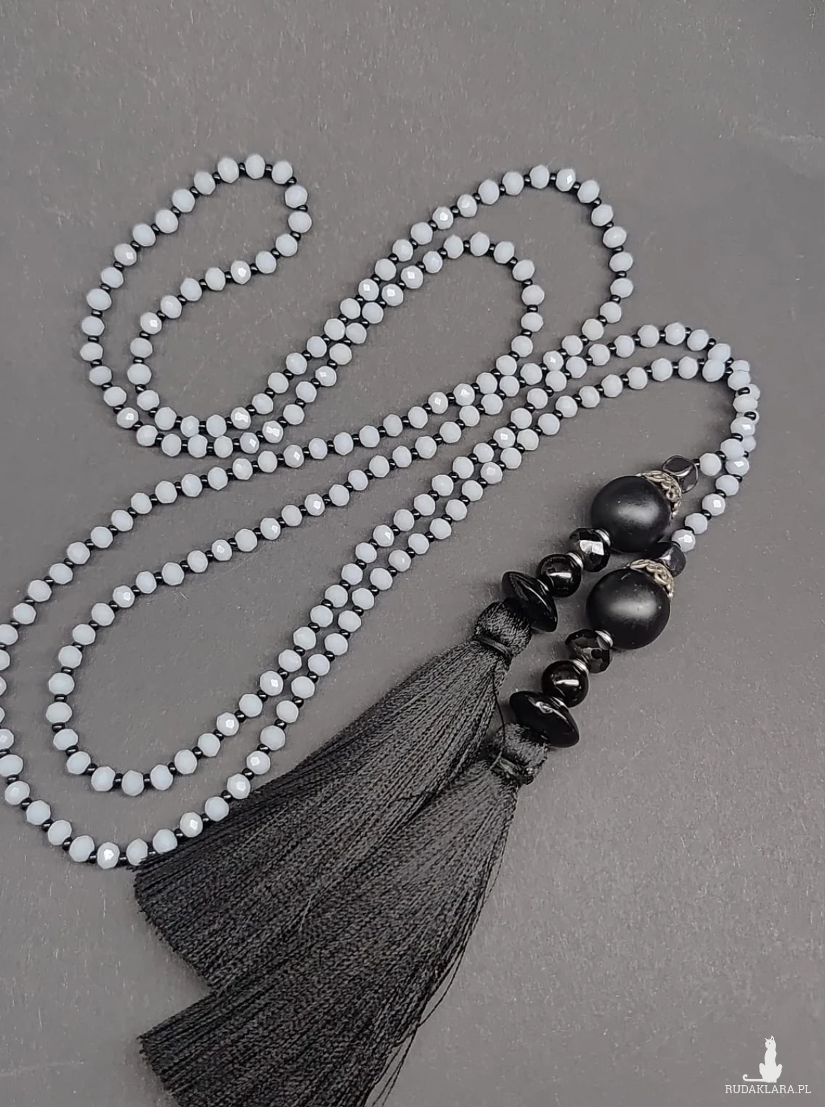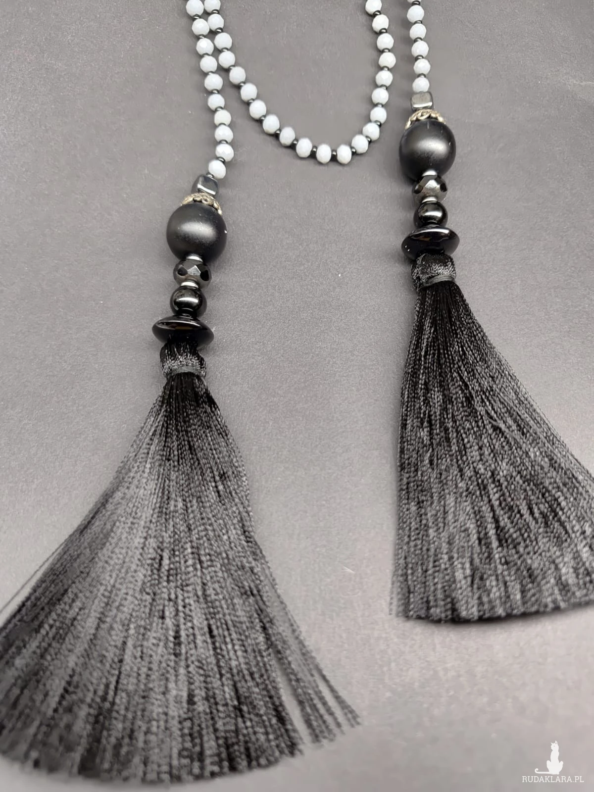 Naszyjnik Długi Sznur Kryształki Szklane z Chwostami
