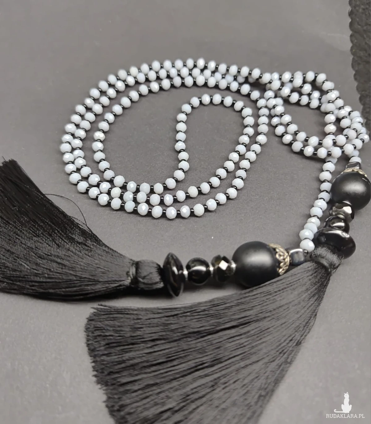 użyłam sznurka syntetycznego, korali szklanych, przekładek hematytu i