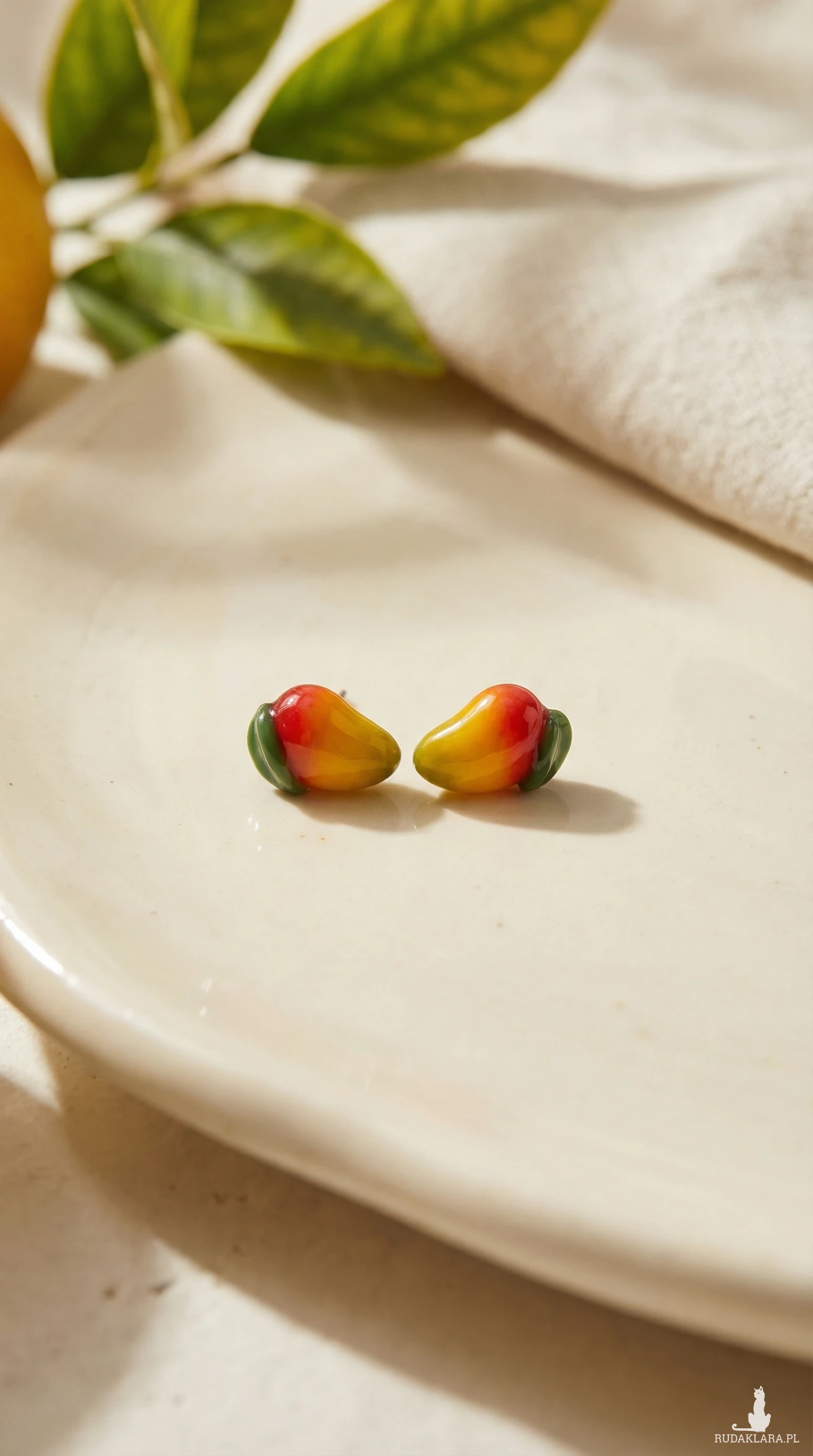 Produkt nieodpowiedni dla dzieci poniżej 3 lat. Kolczyki wykonane z modeliny Fimo, posiadającej atesty bezpieczeństwa. Elementy metalowe użyte w kolczykach wykonane są ze stali chirurgicznej lub metali antyalergicznych. Biżuteria nieodpowiednia dla dzieci ze względu na drobne elementy( możliwość połknięcia, zadławienia) Nie odpowiednia dla zwierząt Przechowywać z dala od dzieci W przypadku pytań proszę o kontakt