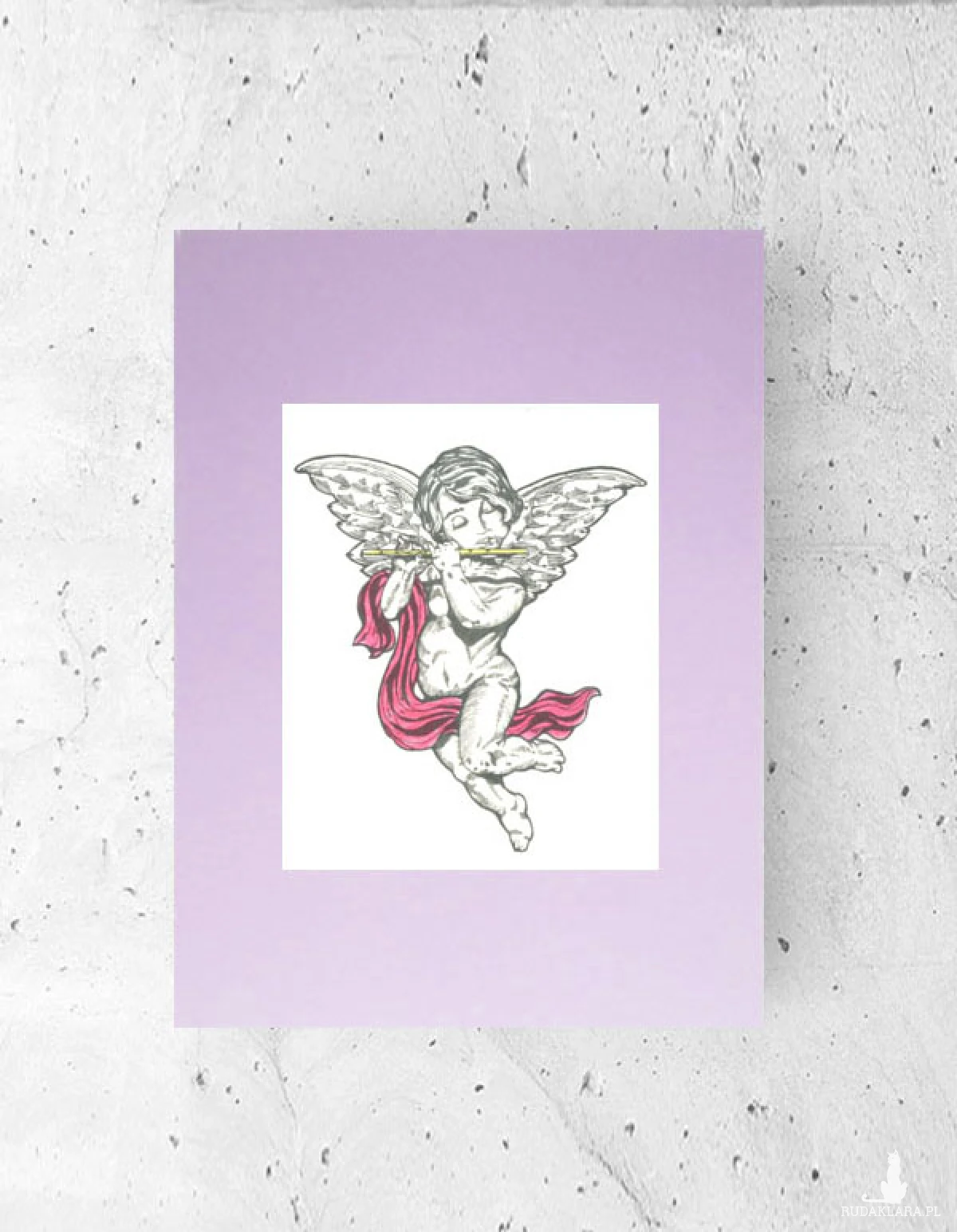 Nowy plakat w stylu retro, grafika z amorkiem na fioletowym kartoniku 21 x 30 cm. Poster do samodzielnej oprawy. Obrazek wystarczy tylko umieścić w antyramie lub ramce A4.