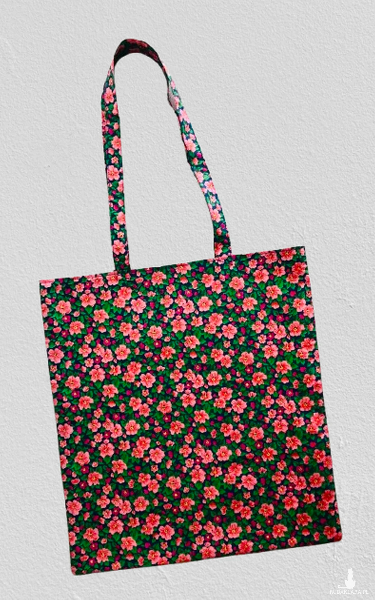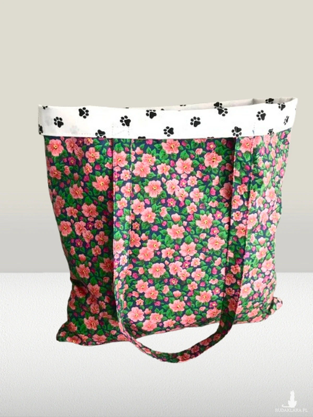 Torba jest duża, pojemna z długimi mocno przyszytymi wzmocnionymi rączkami . Dwie warstwy tkaniny gwarantują, że torba jest mocna i wytrzymała.