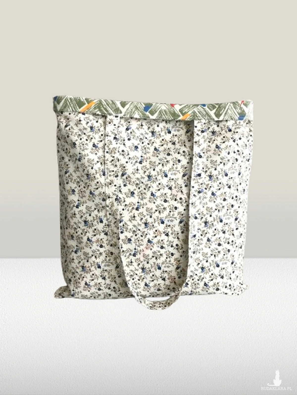 Torba jest duża, pojemna z długimi mocno przyszytymi wzmocnionymi rączkami . Dwie warstwy tkaniny gwarantują, że torba jest mocna i wytrzymała.