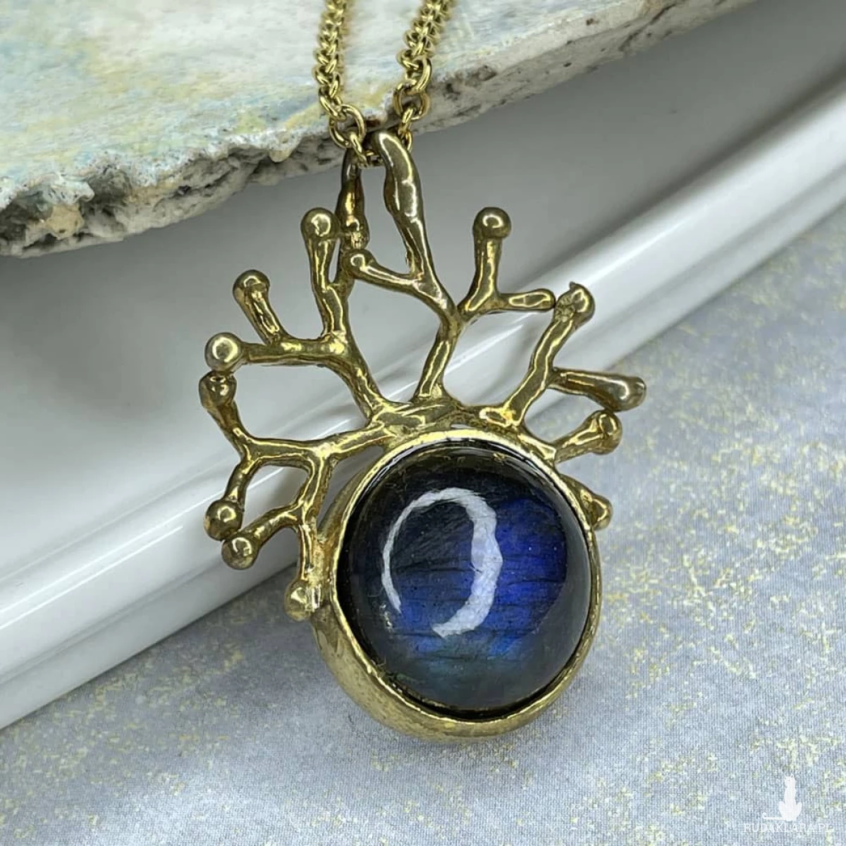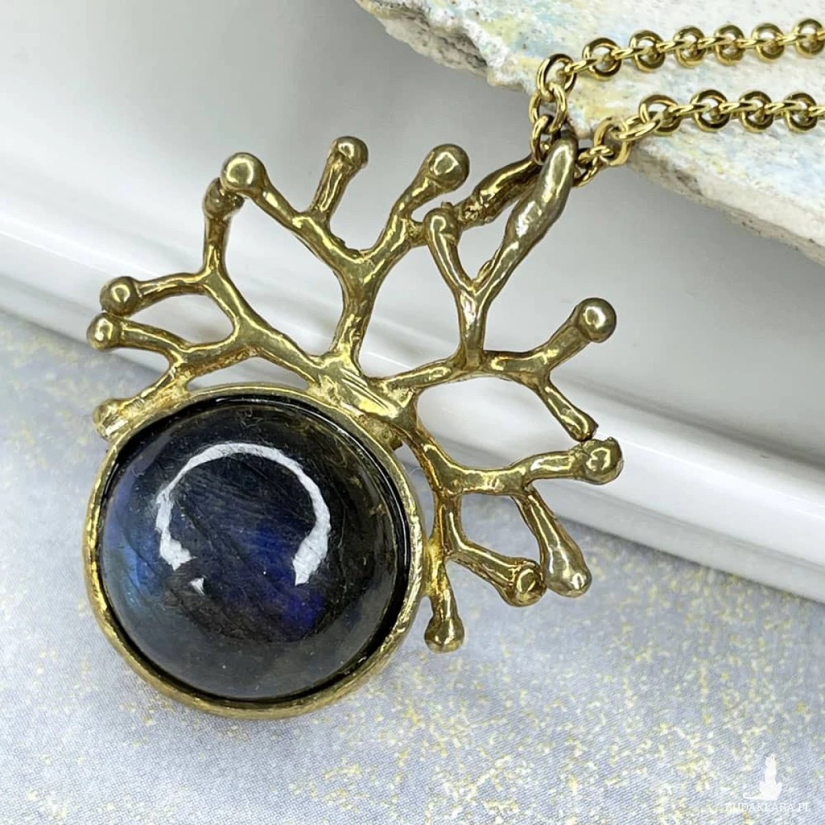 Odkryj magię wieczoru z naszyjnikiem „Korona Nocy”, który łączy w sobie blask iryzującego labradorytu z eleganckim mosiądzem. Kamień mieni się odcieniami niebieskiego i zielonego, naśladując rozgwieżdżone niebo, co nadaje naszyjnikowi niepowtarzalny wygląd. Dzięki ręcznemu wykonaniu i naturalnym materiałom każdy egzemplarz jest wyjątkowy. To biżuteria, która dodaje odrobinę tajemniczości i stylu zarówno codziennym, jak i eleganckim stylizacjom. Kamień: labradoryt Materiał: mosiądz Wykończenie: połysk Wielkość wisiora: ok. 3,5×2,8 cm Średnica kamienia: 15 mm Waga: ok. 6,6 g Naszyjnik zapakowany jest w eleganckie pudełko. Z uwagi na różne ustawienia monitorów, kolory na zdjęciu mogą nieznacznie różnić się od kolorów w rzeczywistości.