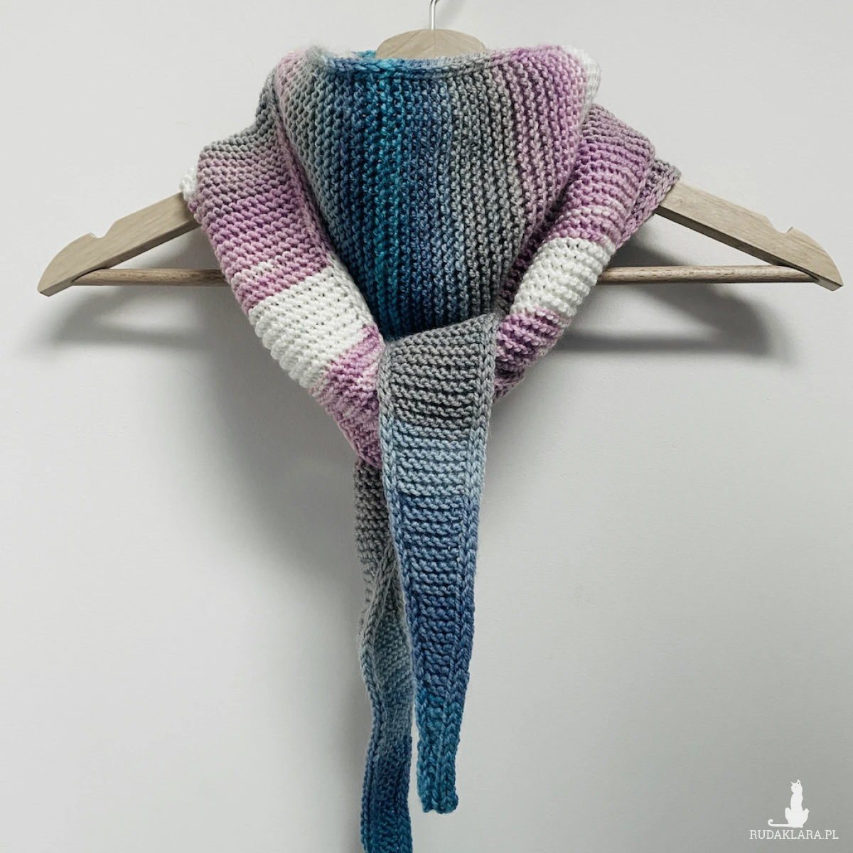 Szalik wykonałam ręcznie na drutach z wysokiej jakości, miękkiej włóczki akrylowej, która zapewnia wygodę noszenia przez cały dzień.