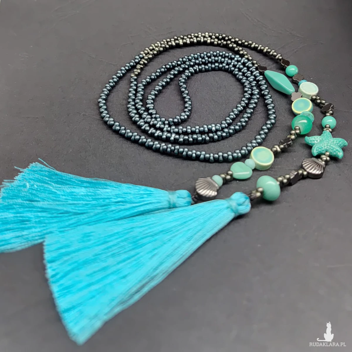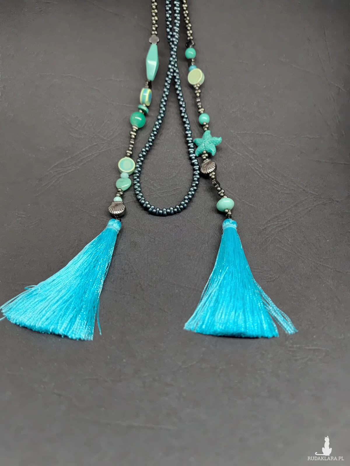 Naszyjnik Długi Sznur Turkusowa Rozgwiazda Z Chwostami