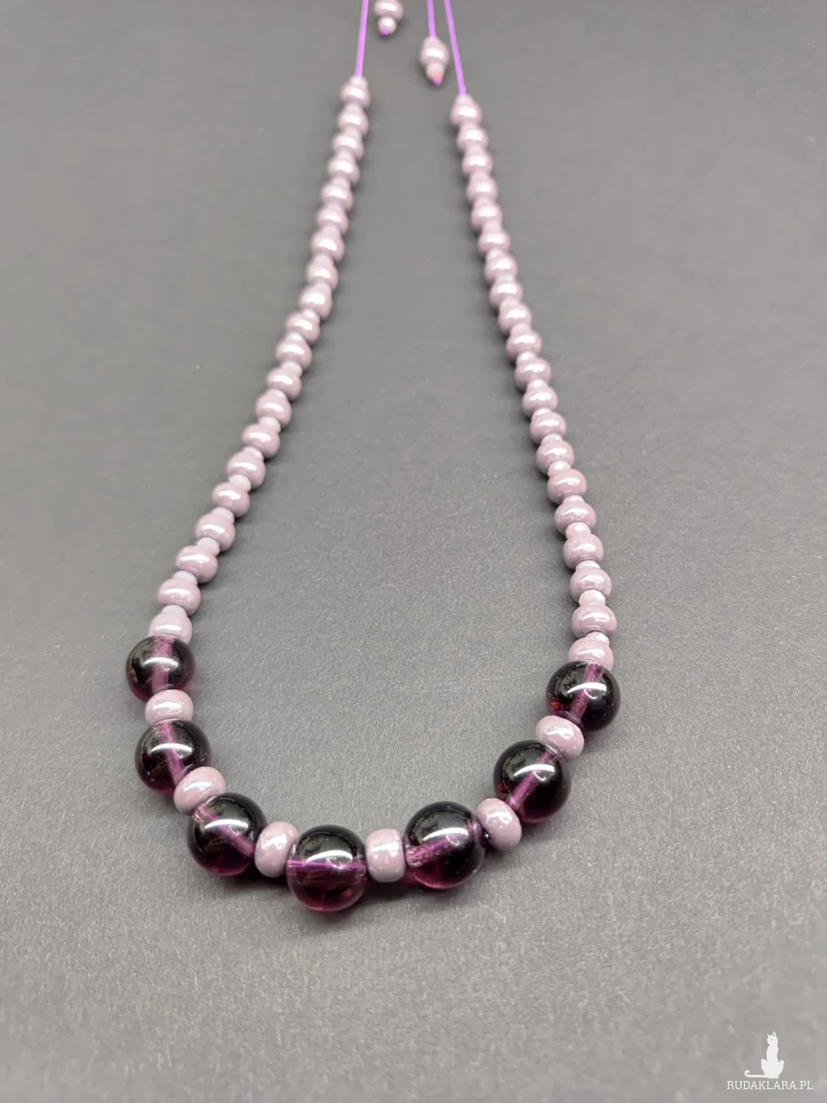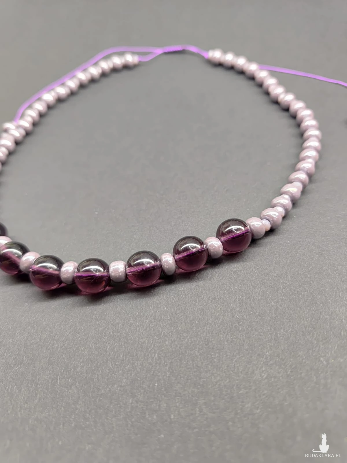 naszyjnik w fioletowym kolorze. Na sznurku syntetycznym fioletowym z