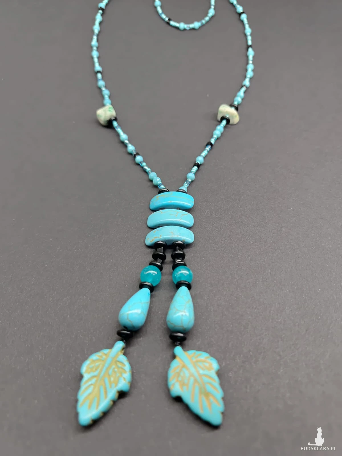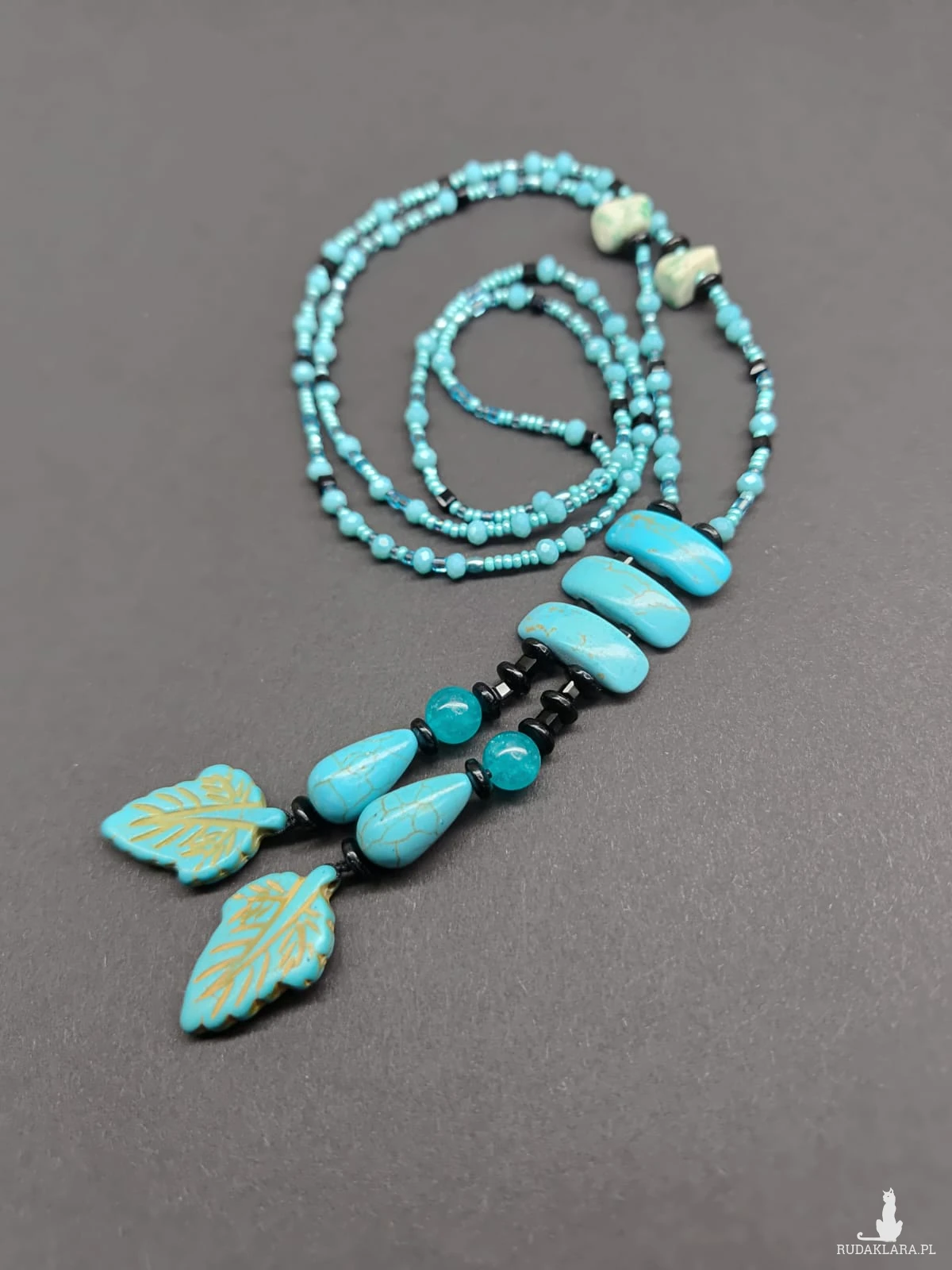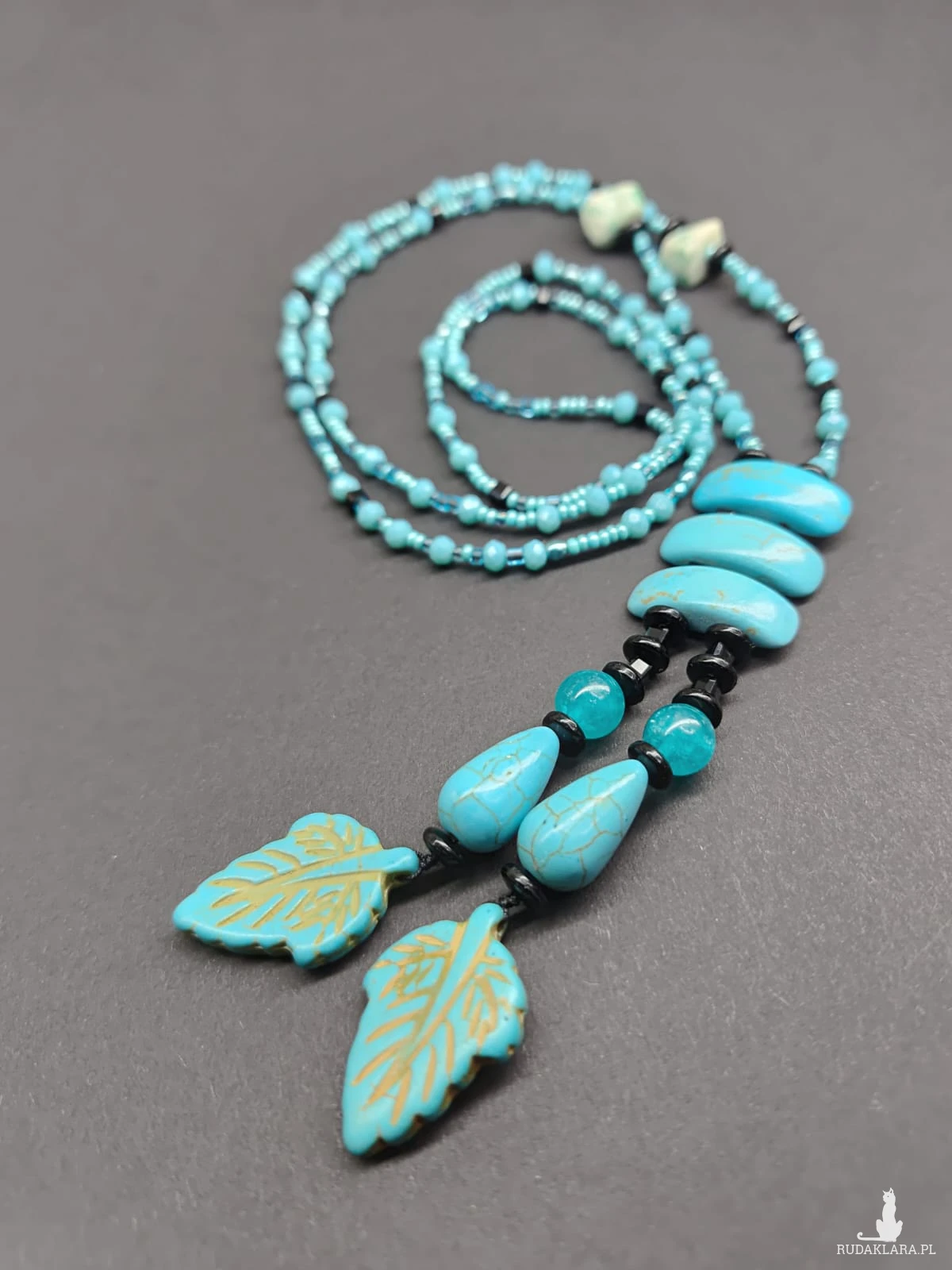 howlit w kolorze turkusowym, bryłki zielonych kamieni, dł 40 cm plus 10