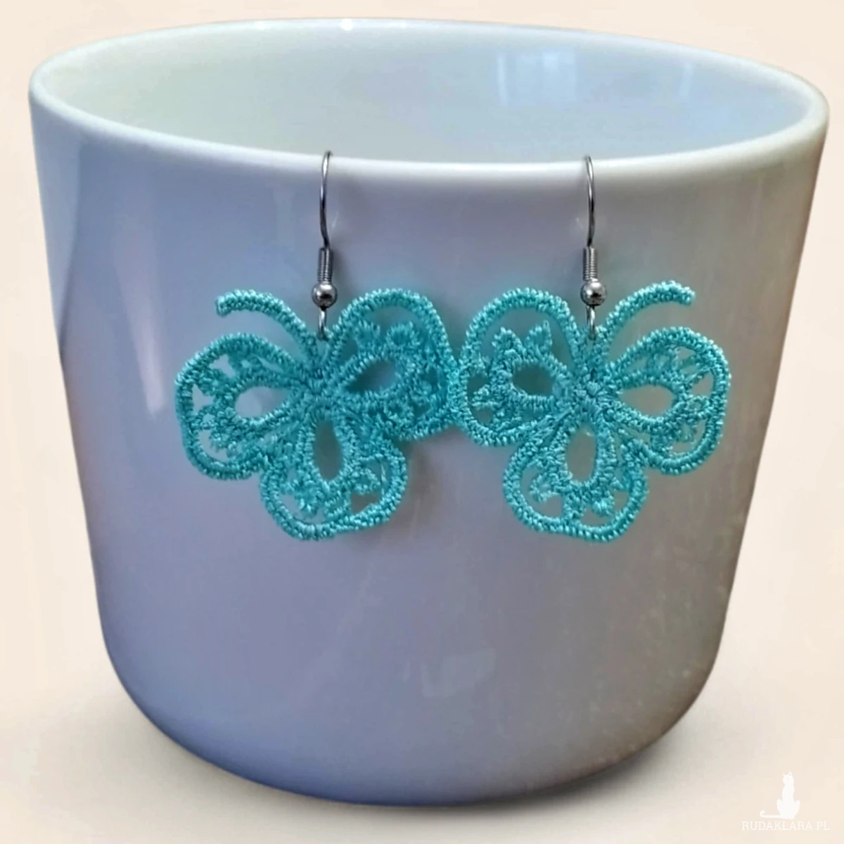 Kolczyki są haftowane (haft maszynowy). Kolczyki są sztywne w chwycie, ich kształt oraz wygląd nie zmieniają się. Haftowane kolczyki też są lekkie - to ich kolejny atut.