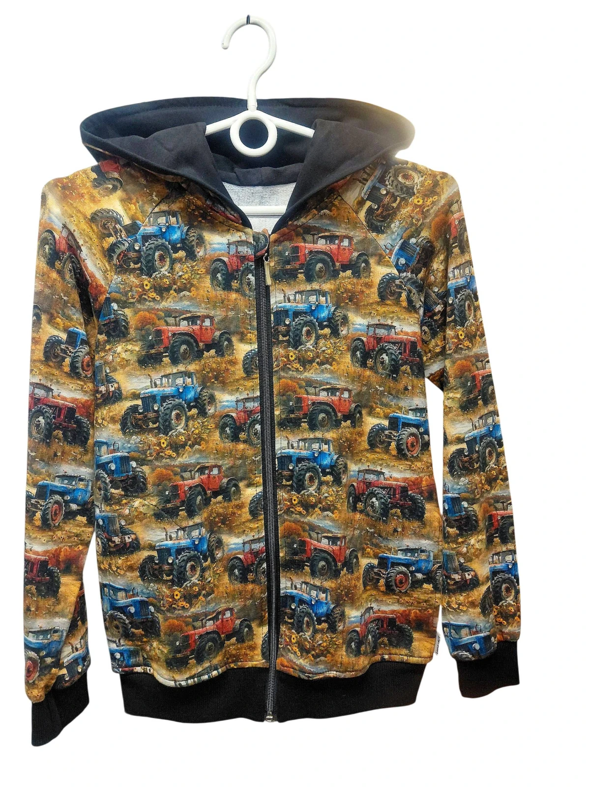 Bluza rozpinana z kapturem, uszyta z dresówki pętelki, wzór cyfrowy.