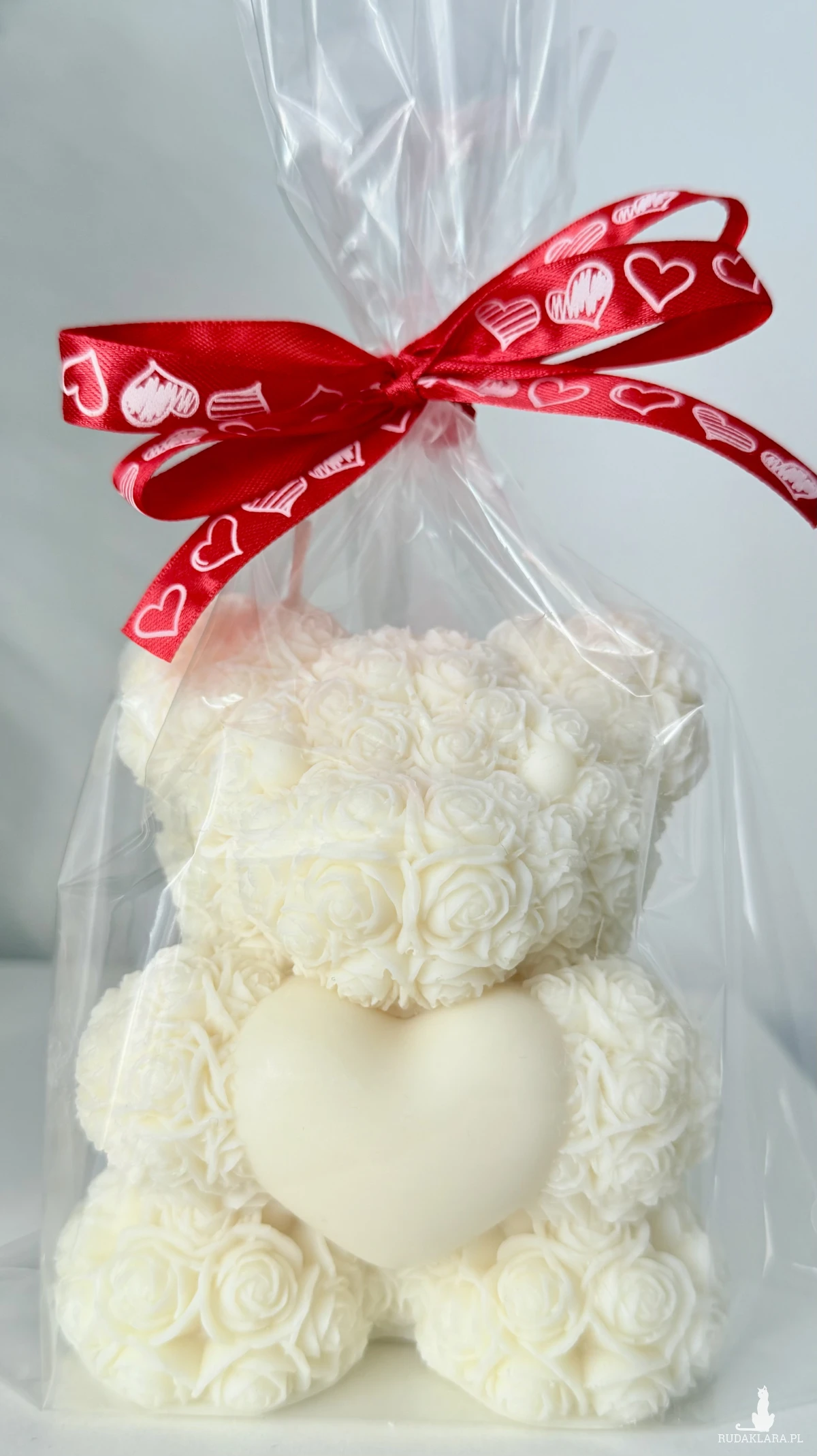 W tym ogłoszeniu duża świeca różany miś 🧸♥️
