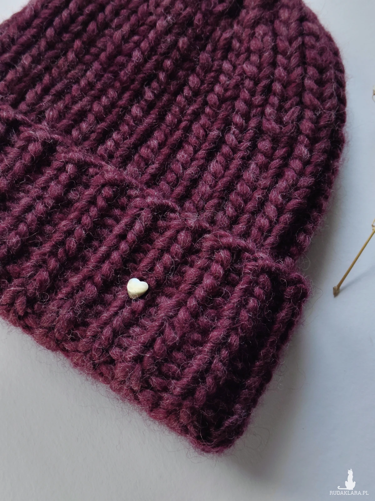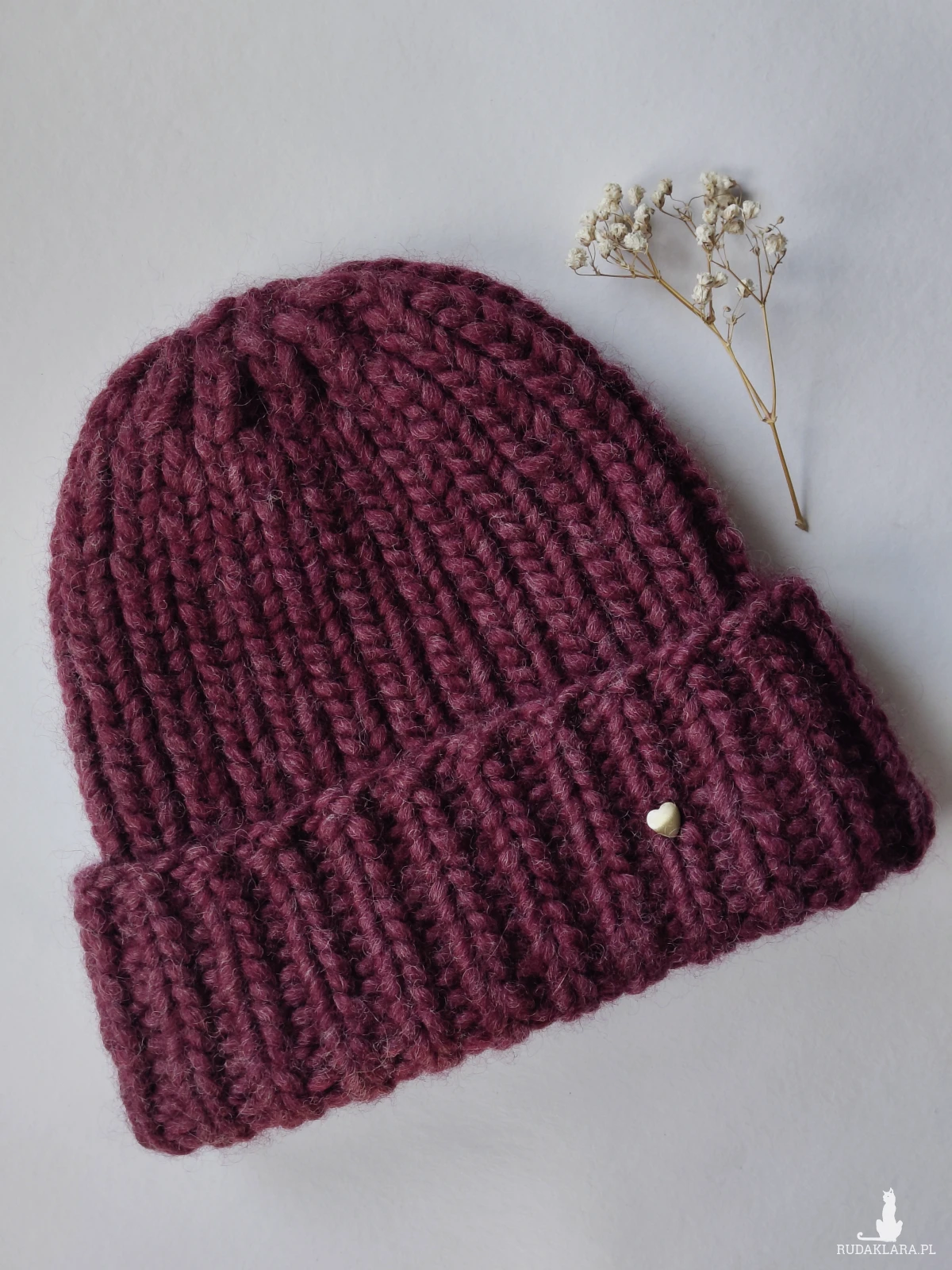 Czapka burgundowa, wykonana ze 100% wełny czesankowej.
