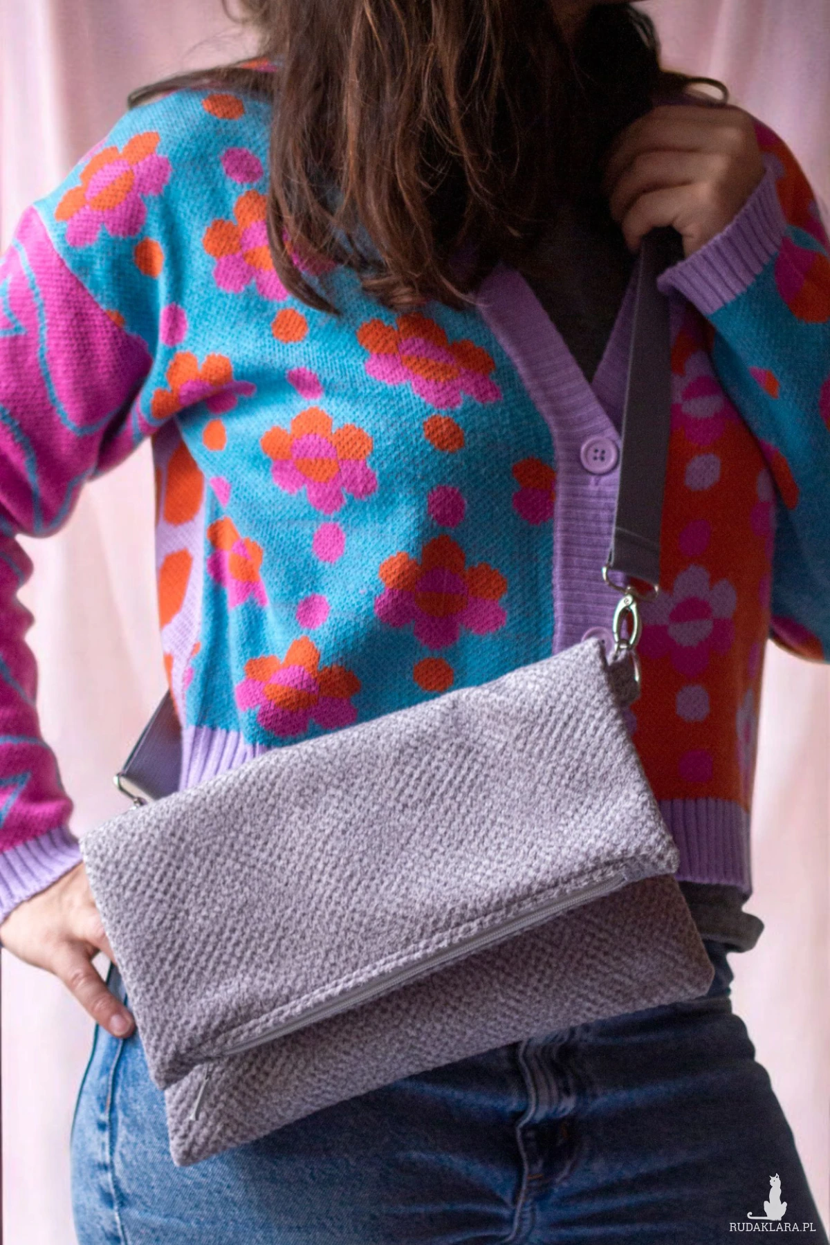 Do torebki dołączony jest regulowany, bawełniany pasek grubości 3cm w kolorze szarym.