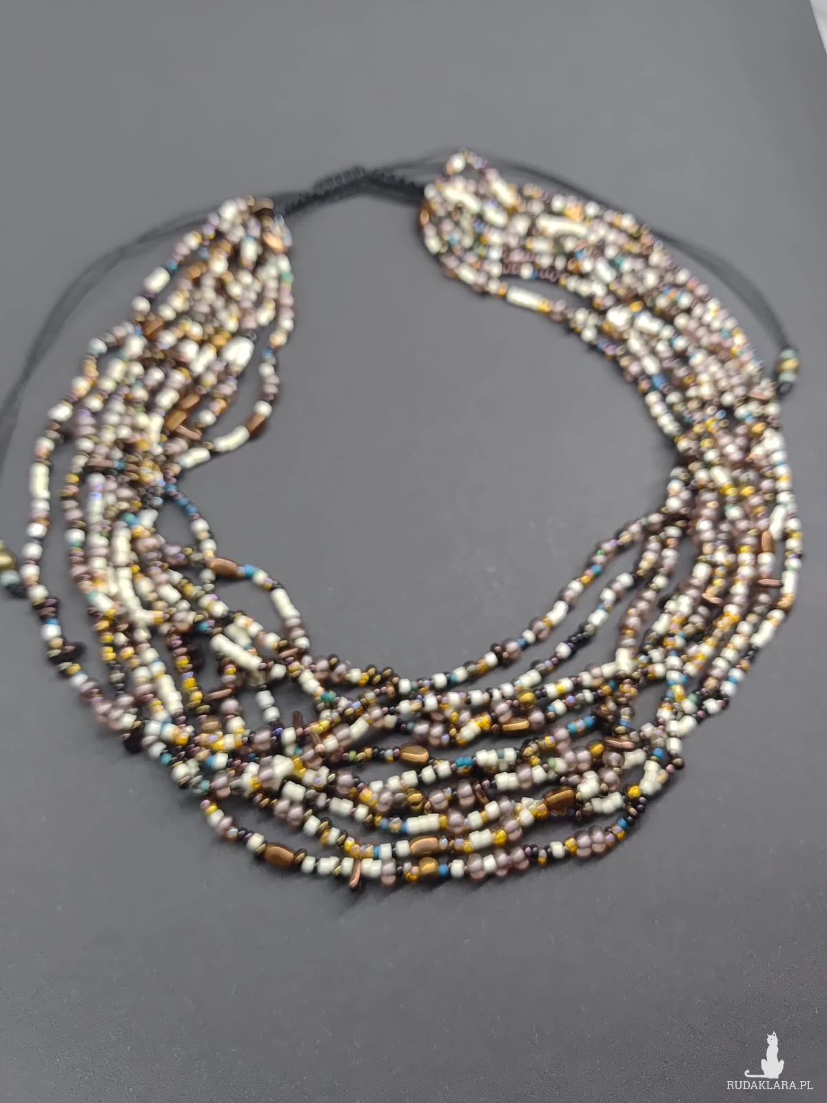Naszyjnik Mix Korali Drobnych Brązowych Kremowych Z Drobinkami