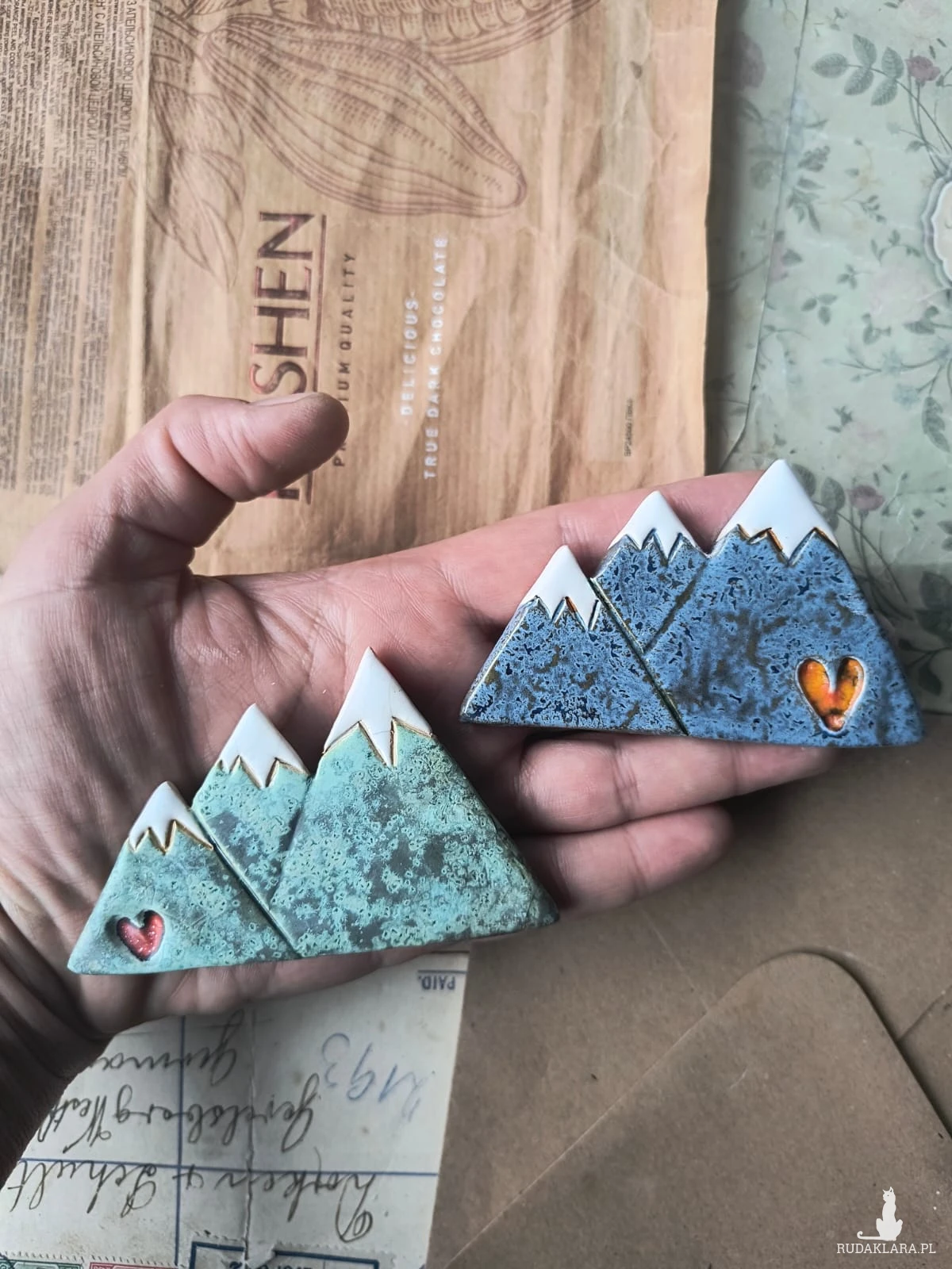 Magnesy w postaci szczytów dla miłośników górskich wędrówek. Wymiary ok 5, 5 cm x 7,5 cm. Polecam serdecznie.