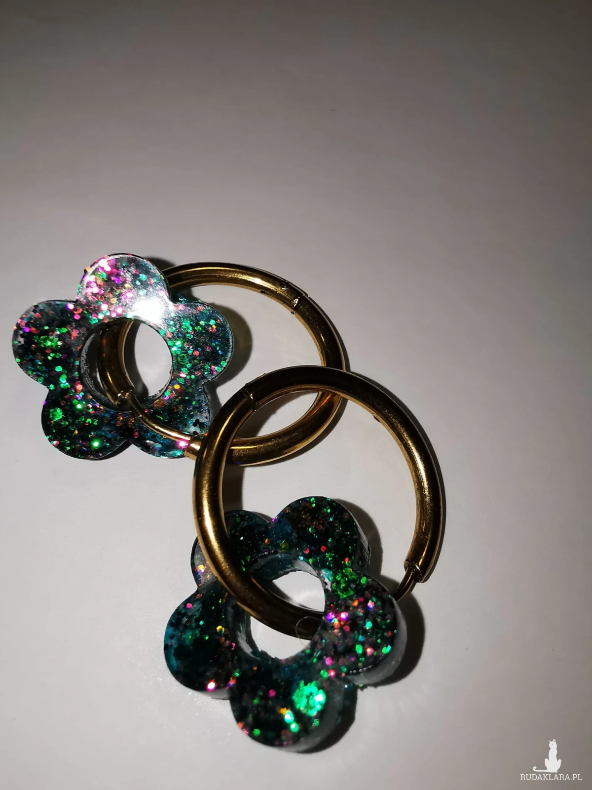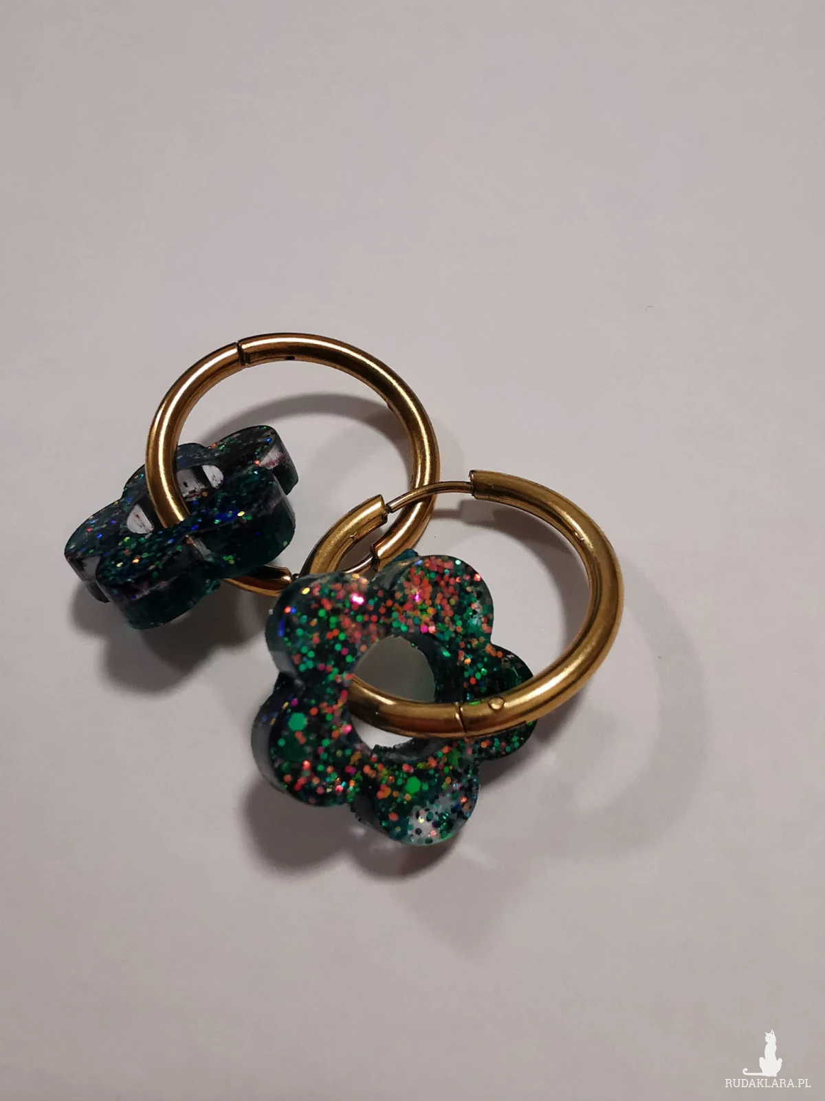 Kolczyki brokatowe. Lekkie, wytrzymałe. Wykonane z żywicy epoksydowej.