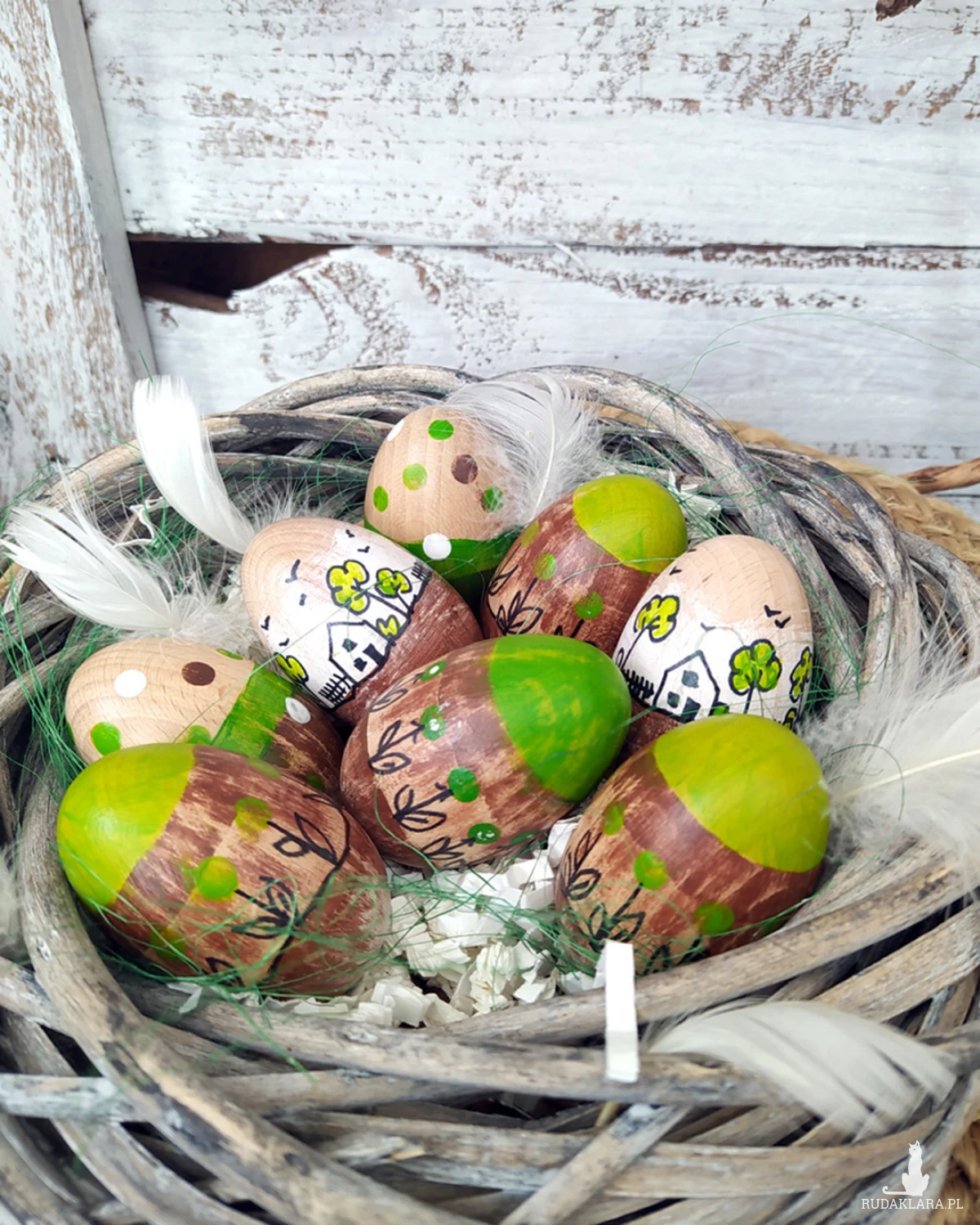 Pisanki są malowane farbami akrylowymi, kontury wykonane są pisakiem permamentnym. Całość zabezpieczona jest lakierem akrylowym - to jest nietoksyczny, bezzapachowy i matowy lakier. Jeśli pisanki się zabrudzą, wystarczy przetrzeć je wilgotną ściereczką - farba, którymi są pomalowane jest wodoodporna.