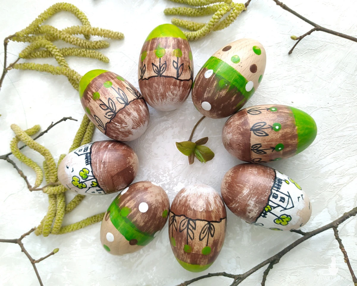 Drewniane pisanki ręcznie malowane - zestaw 8 sztuk.
