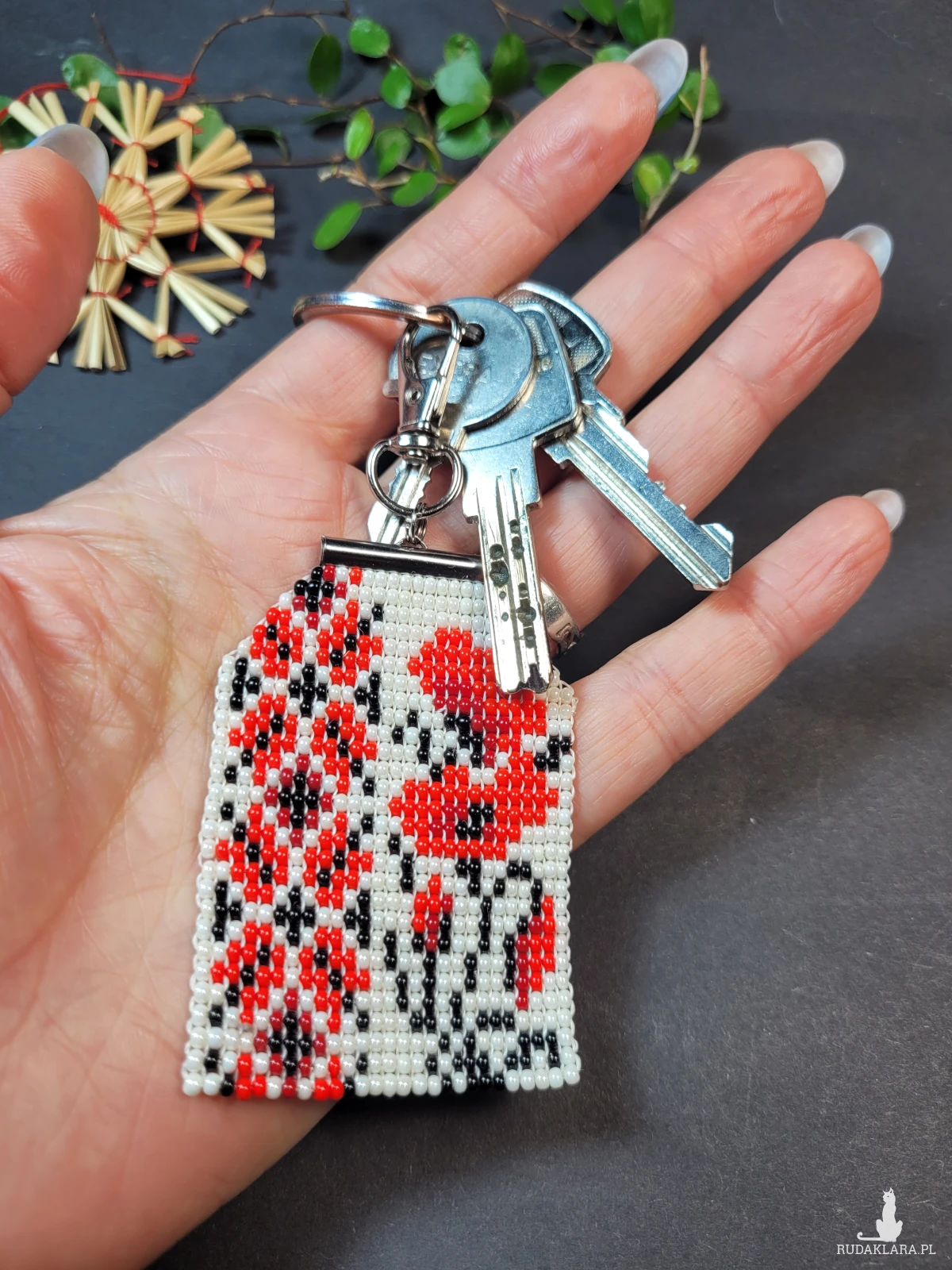 Poczuj powiew tradycji w nowoczesnym wydaniu. Ten wyjątkowy brelok łączy w sobie elegancję mlecznego tła z ognistą czerwienią maków, tworząc dodatek, który przyciąga wzrok i rozgrzewa serce.