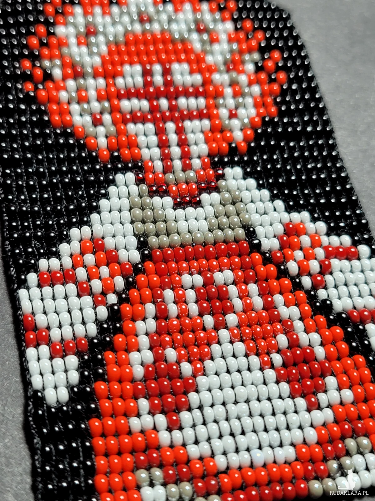 • Technika: Ręczne tkactwo koralikowe (bead weaving) – każdy koralik jest wplatany osobno, co gwarantuje niezwykłą trwałość i idealną geometrię wzoru.