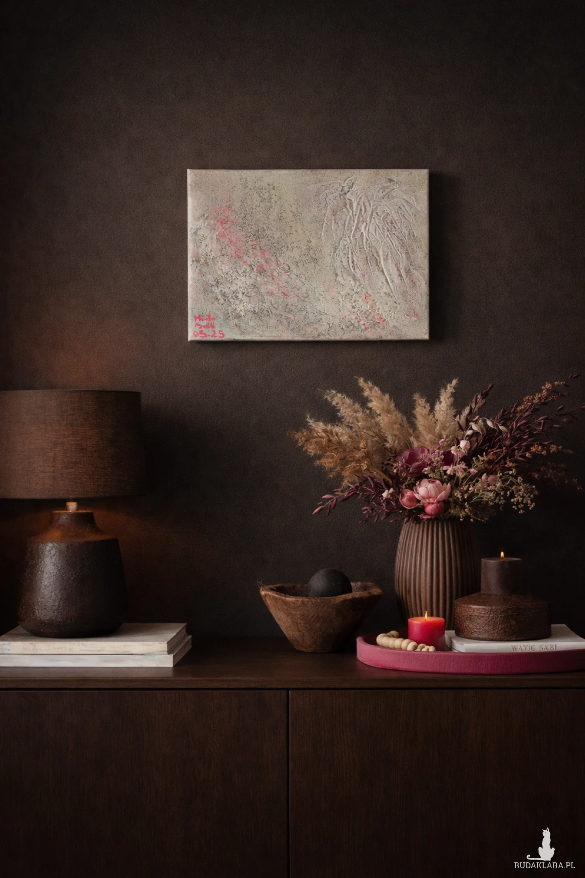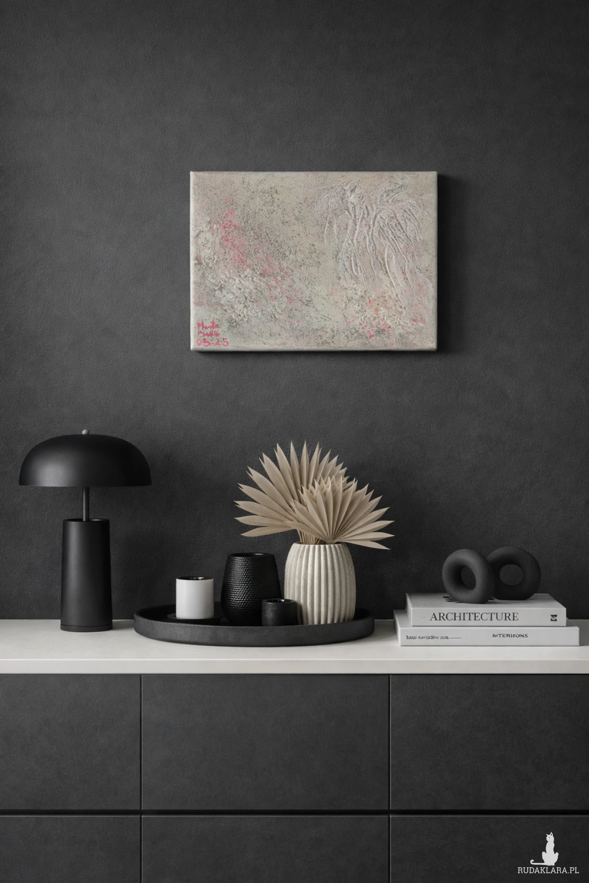 Nowoczesna, strukturalna abstrakcja, wykonana w autorskiej technice