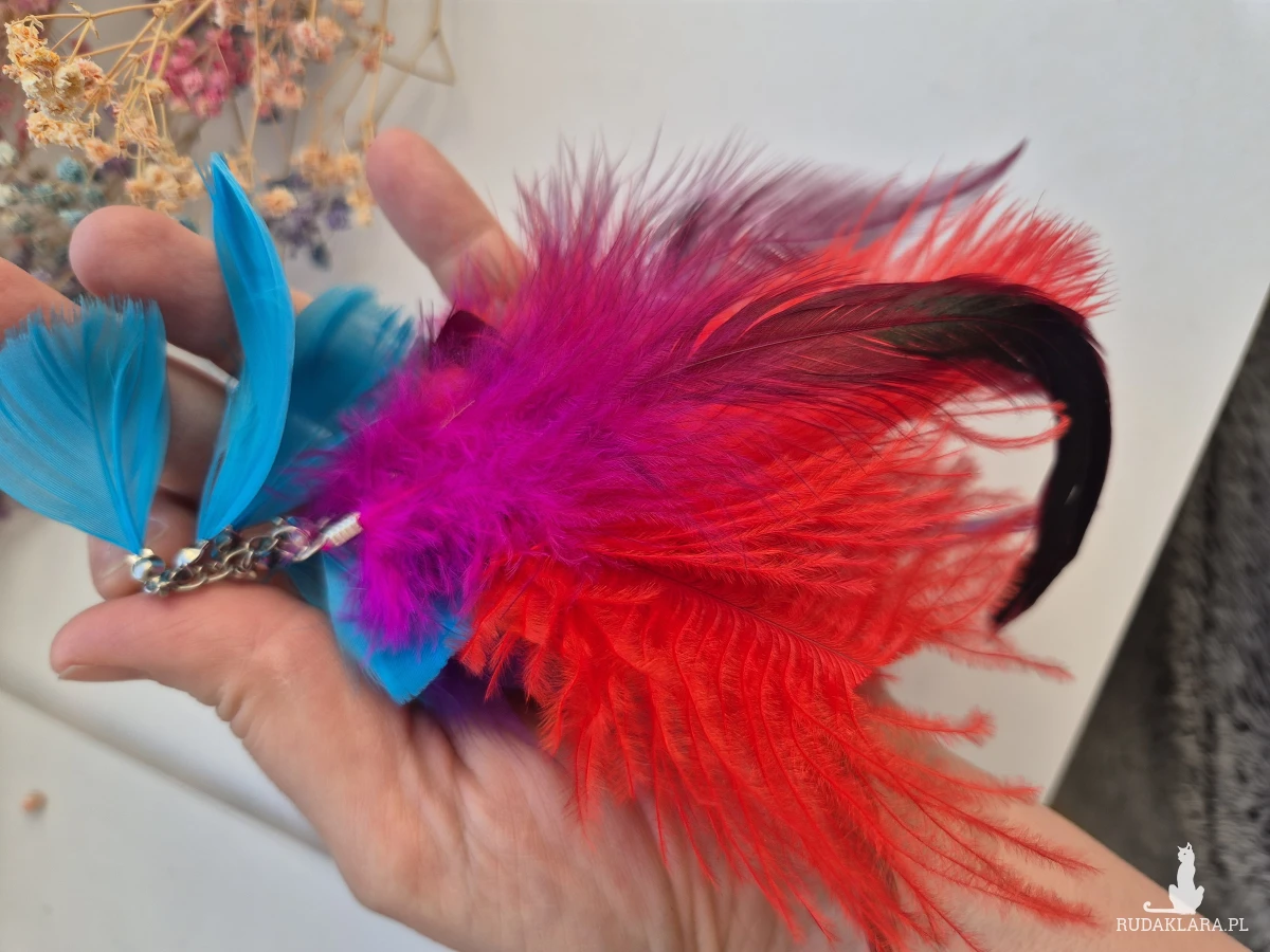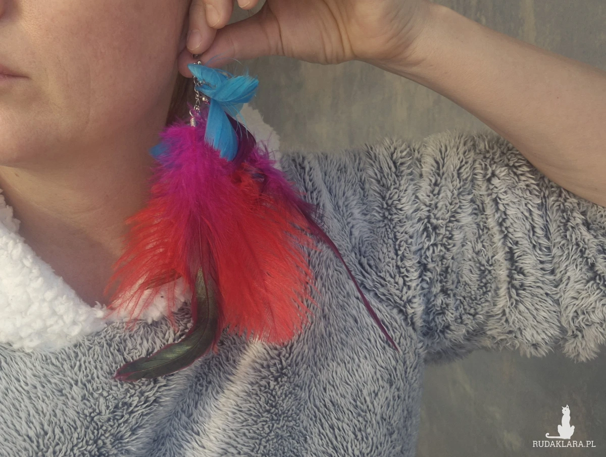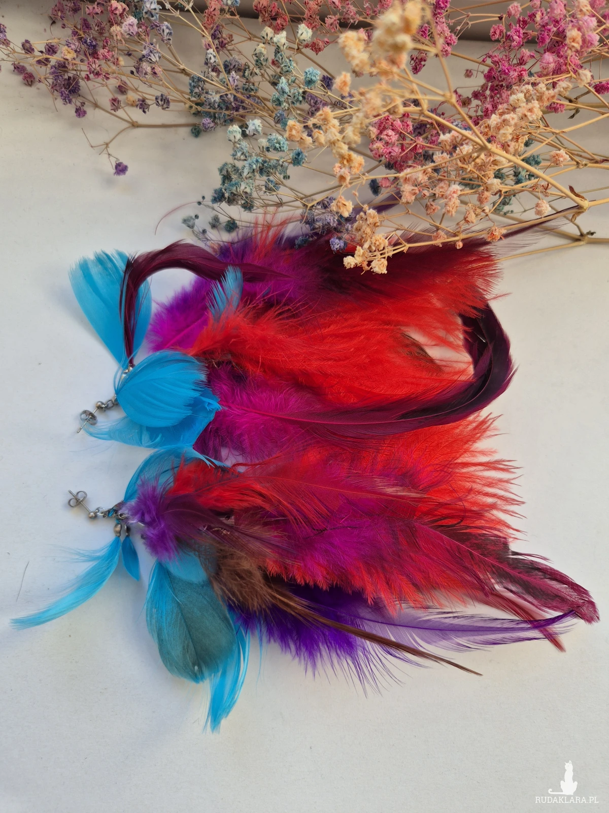 Kolczyki kolorowe energetyczne  pióra duże  wykonane w pojedynczym egzemplarzu rękodzieło