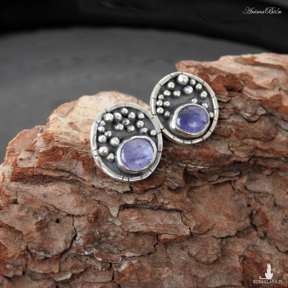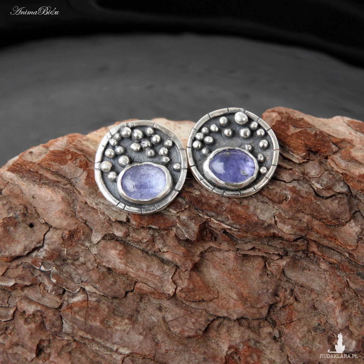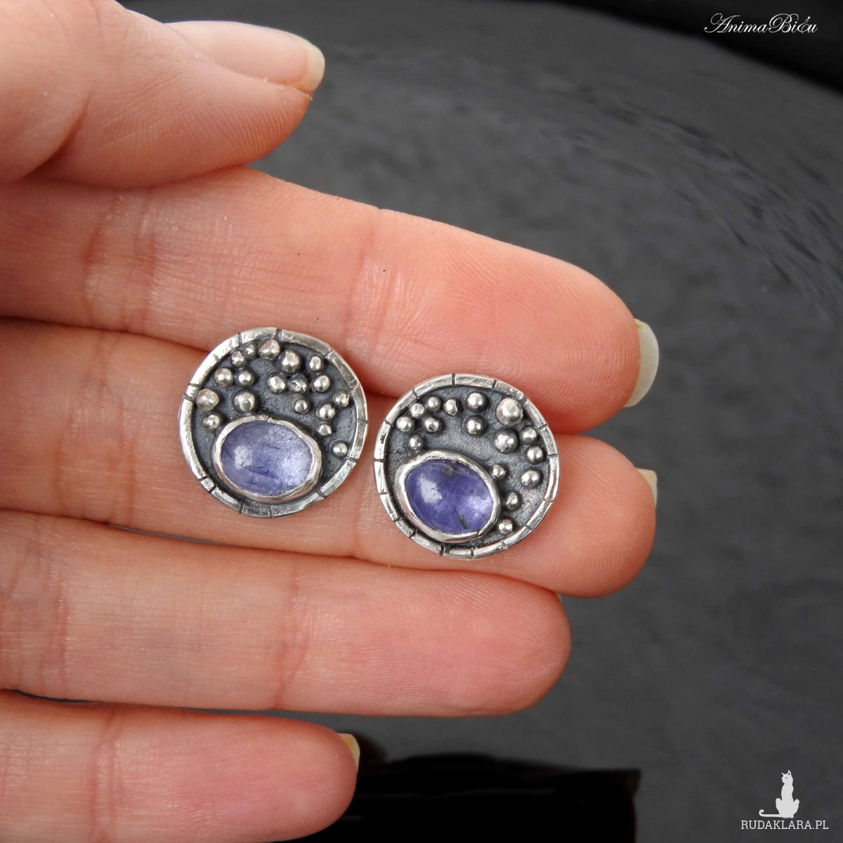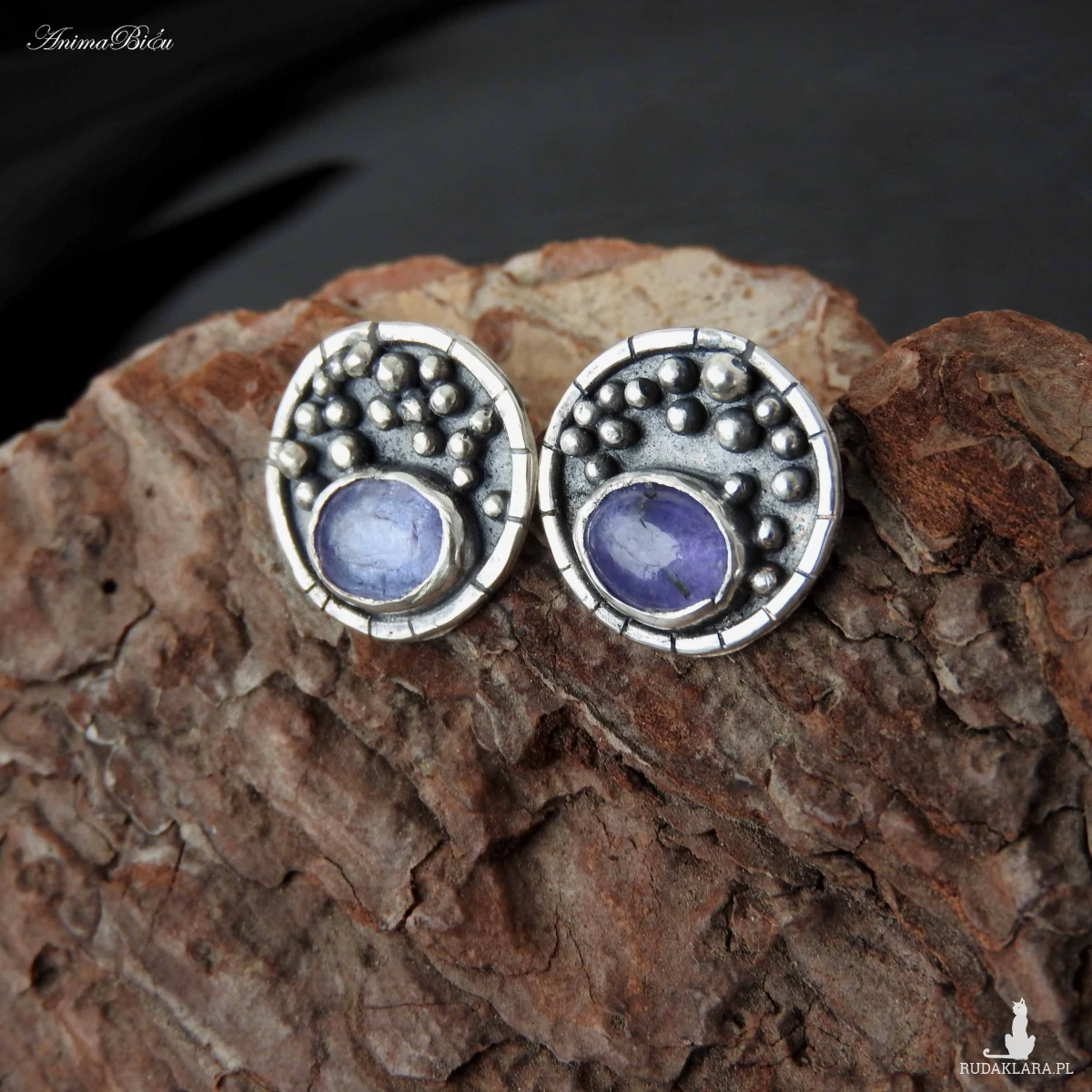 Kolczyki srebrne wkrętki z tanzanitem. Kolczyki wykonałam od