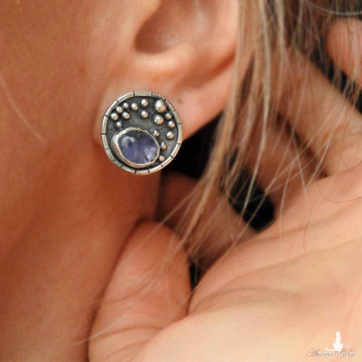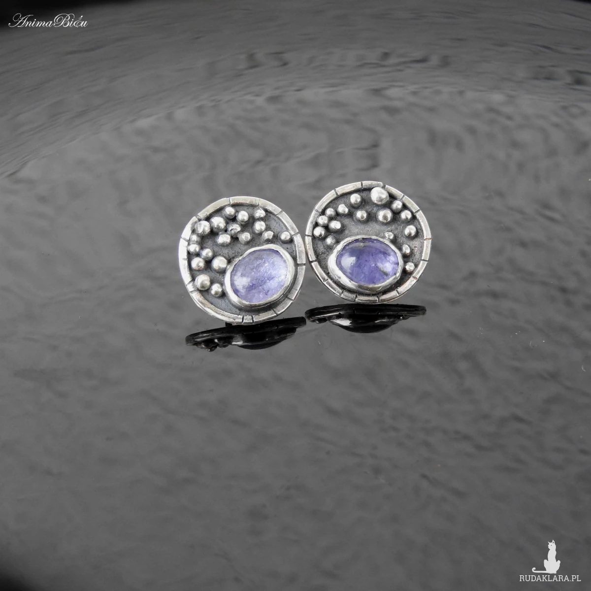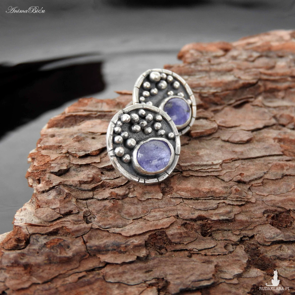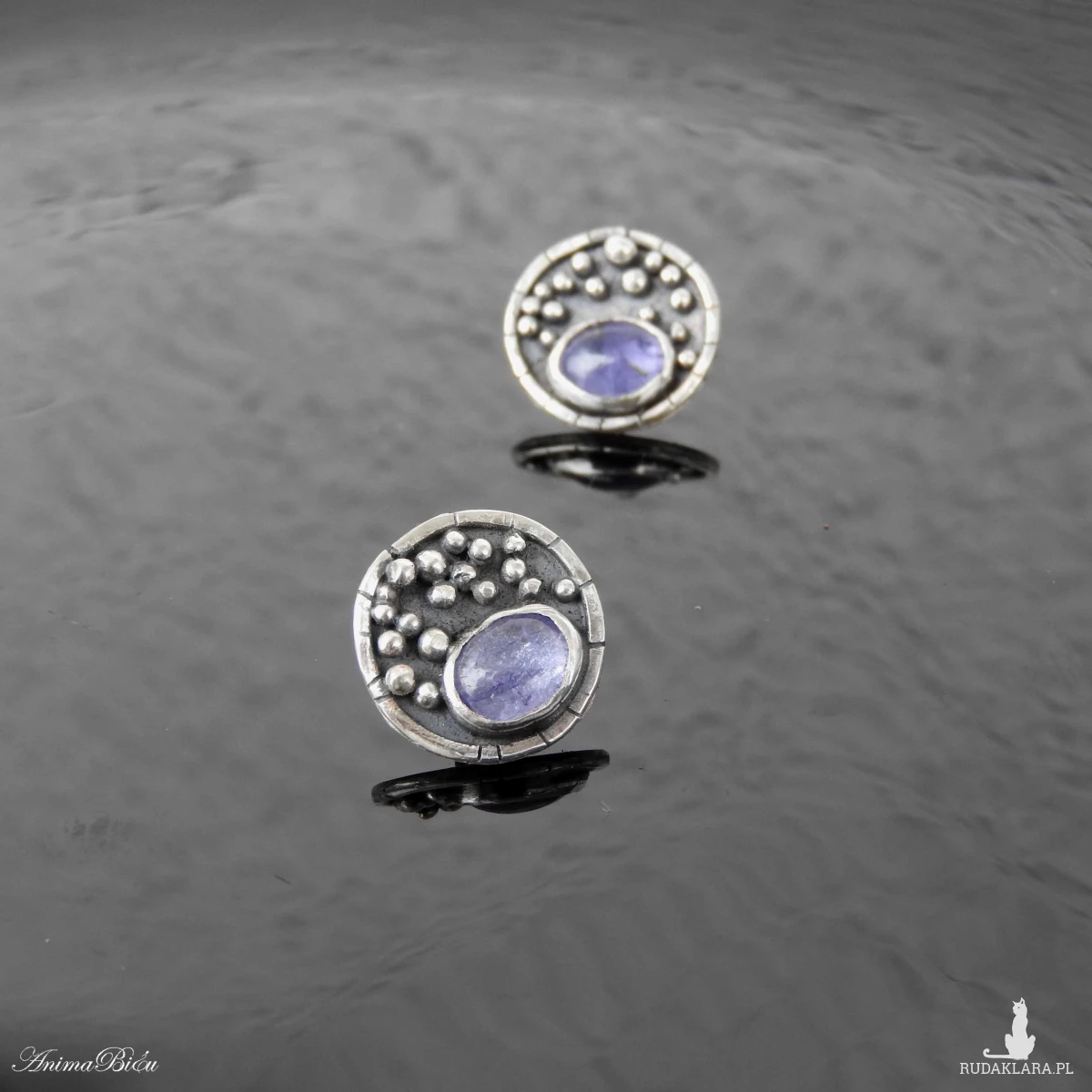 Kolczyki srebrne wkrętki z tanzanitem. Kolczyki wykonałam od