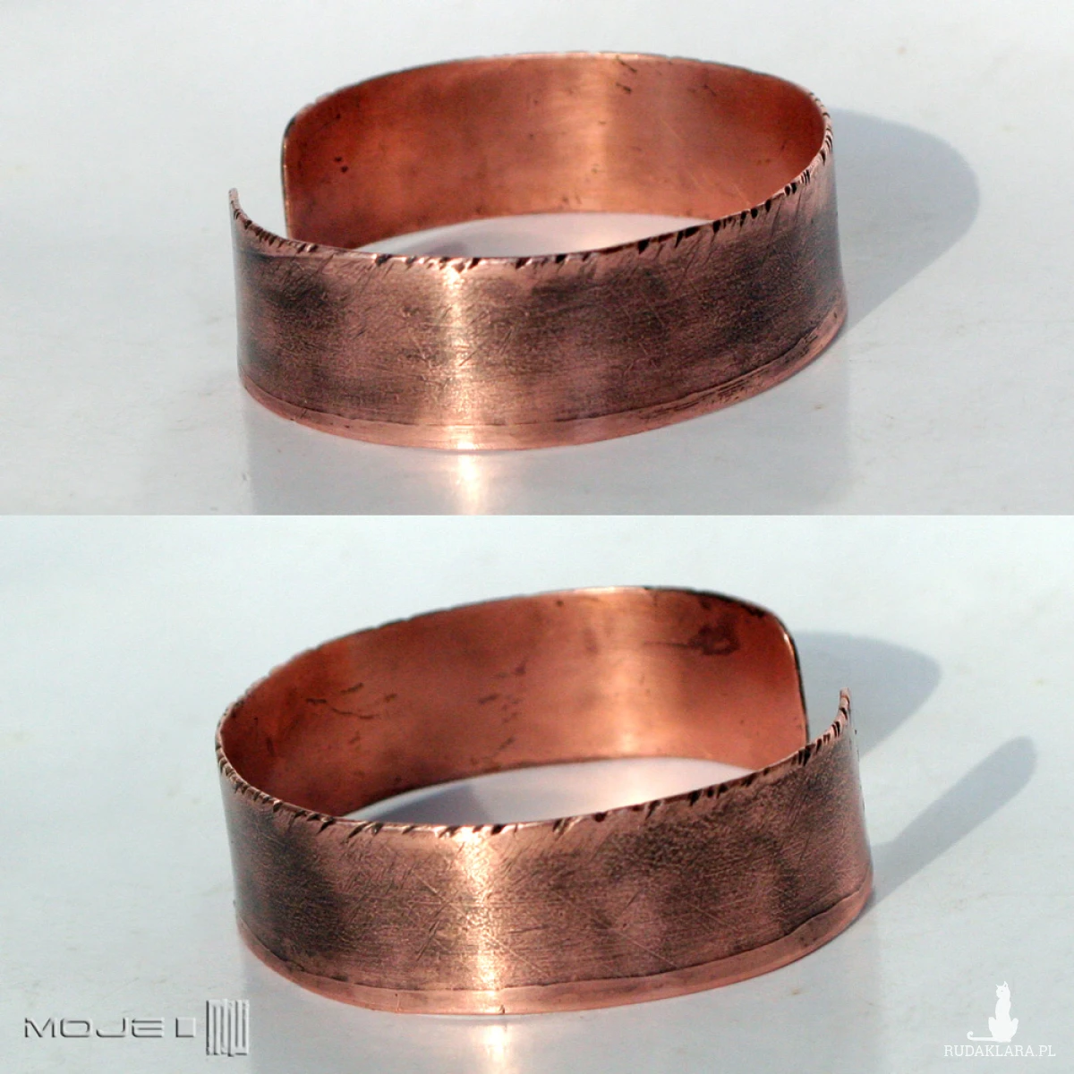 Prosta miedziana bransoleta unisex - pasuje zarówno na męską, jak i damską rękę.