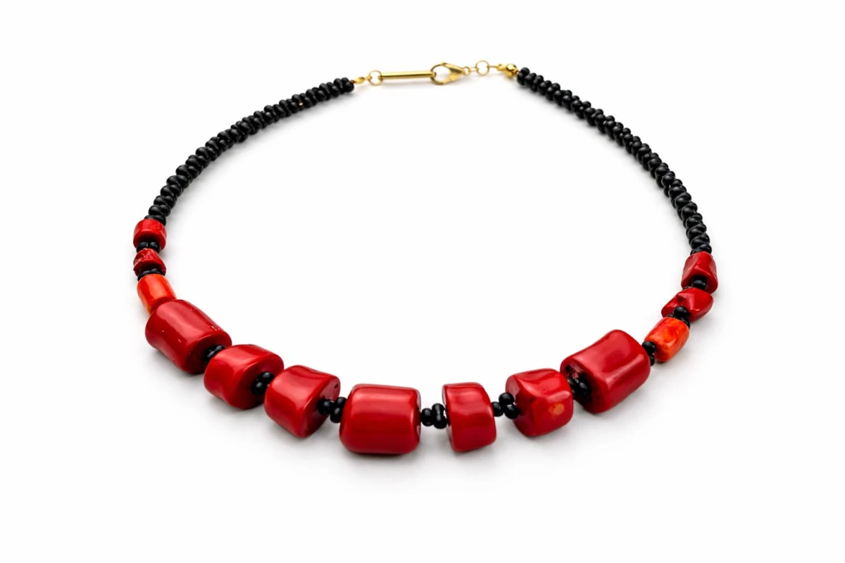 Korale szklane, metalowe drobne elementy chronić przed małymi dziećmi.